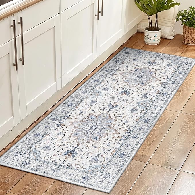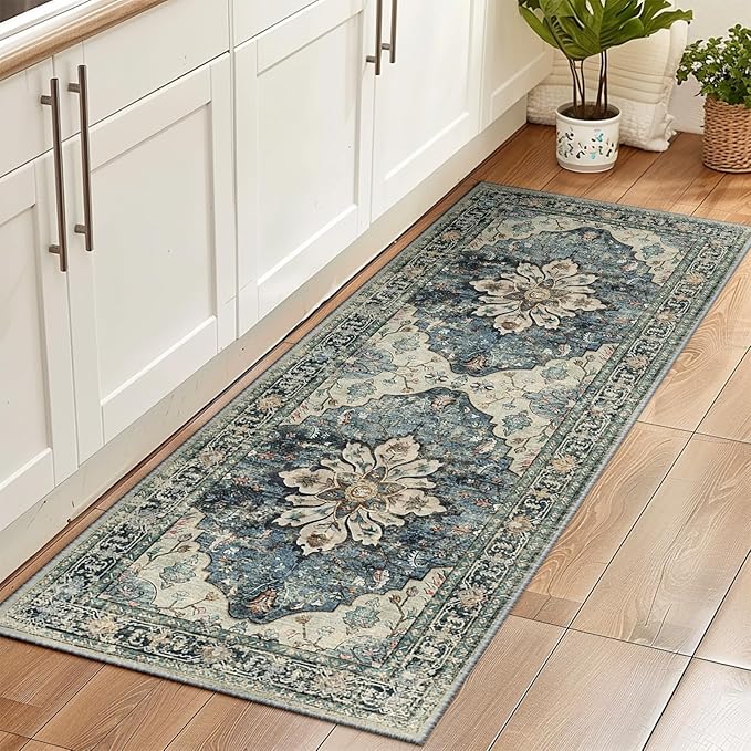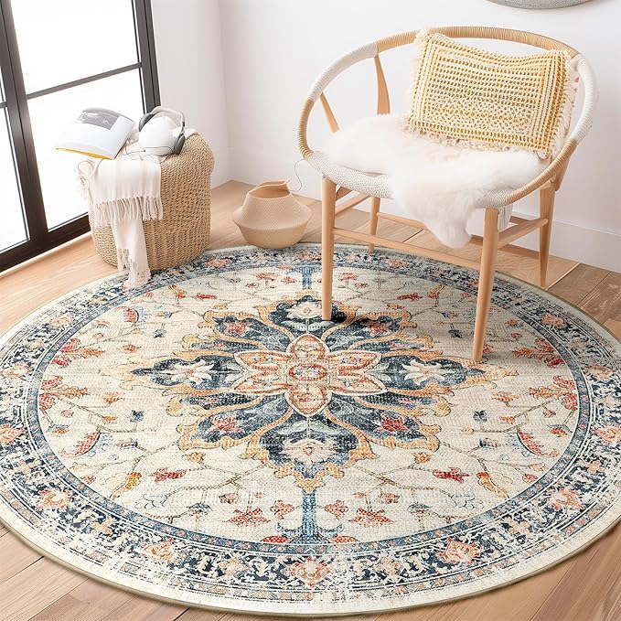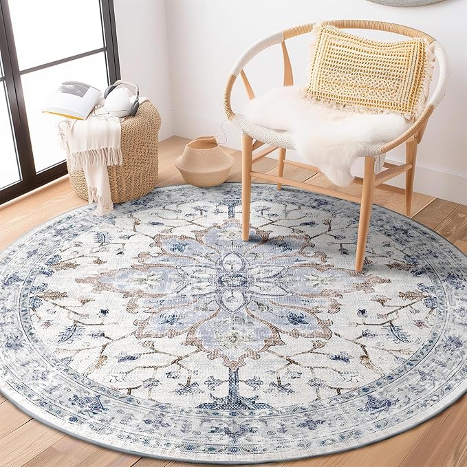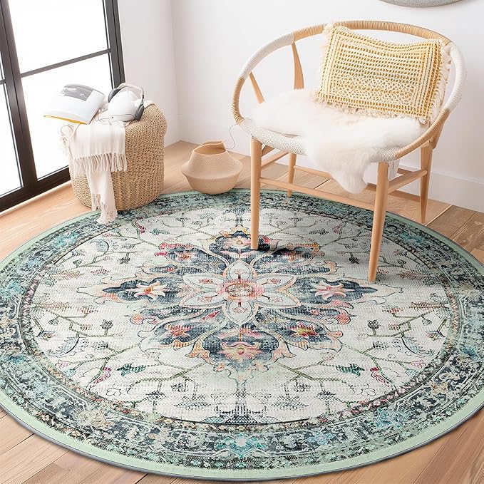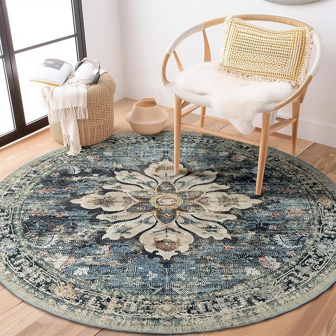 - Soft floral area rugs: this washable area rug is made with soft materials comfortable on barefoot and easy to maintenance. The edges are reinforced. Is a rug for livingroom in vintage and distressed style with floral pattern.