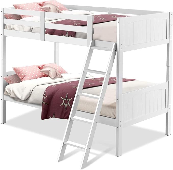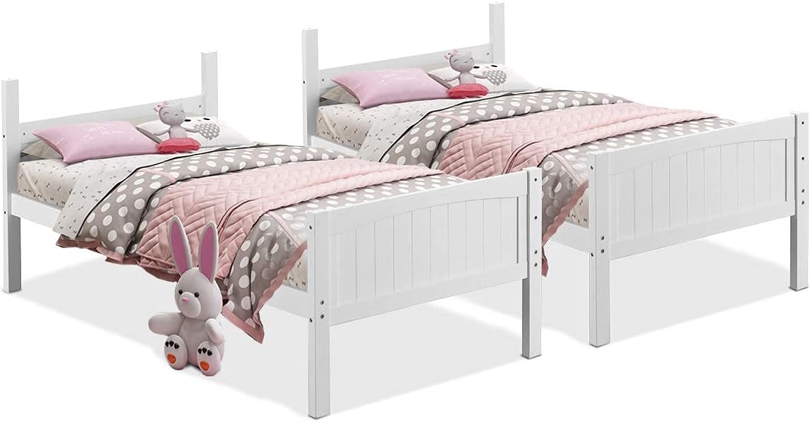 Twin Bunk Beds with Ladder and Safety Rail, Rubber Wood Bunk Bed Convertible Into 2 Single Beds for Kid
