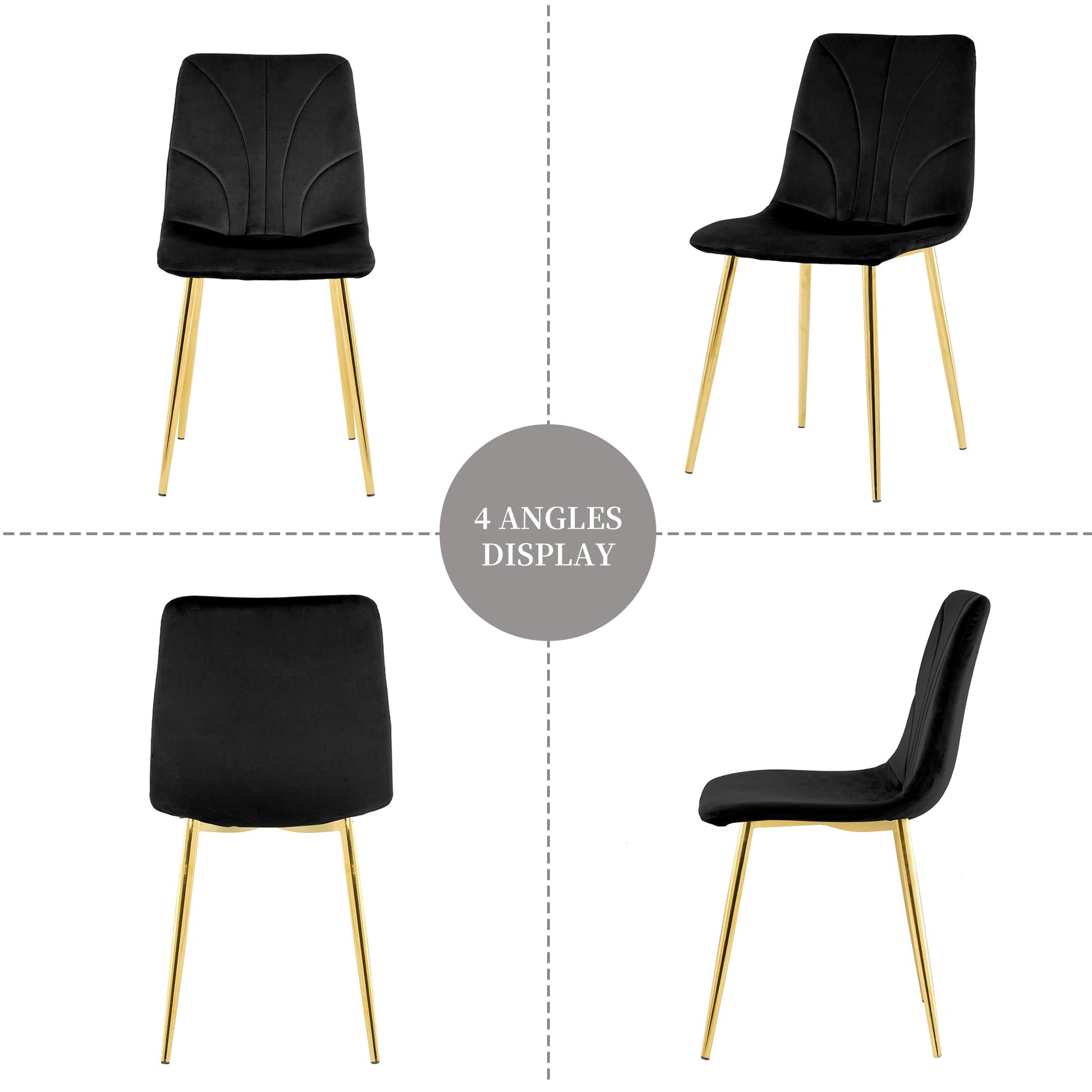 RGZ Dining Chairs Set of 4, Mid Century Modern Dining Room Chairs, Upholstered Dining Chair with Wide Seat & Metal Legs for Dining Room, Living Room, Kitchen (Velvet Fabric, Black)