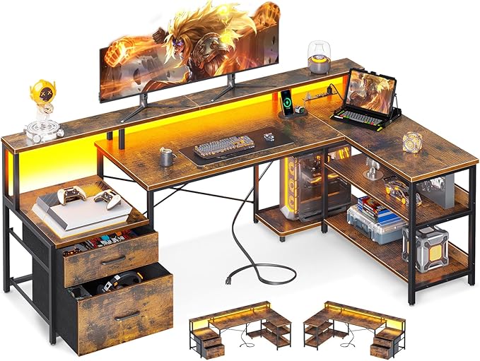 - LED Light- The home office desk also comes with RGB LED light , 12 scene modes, which can be switched cyclically. When entertaining, dim the lights and choose your favorite colors to fully immerse yourself in the game. When working, match your favorite color to make you work more focused