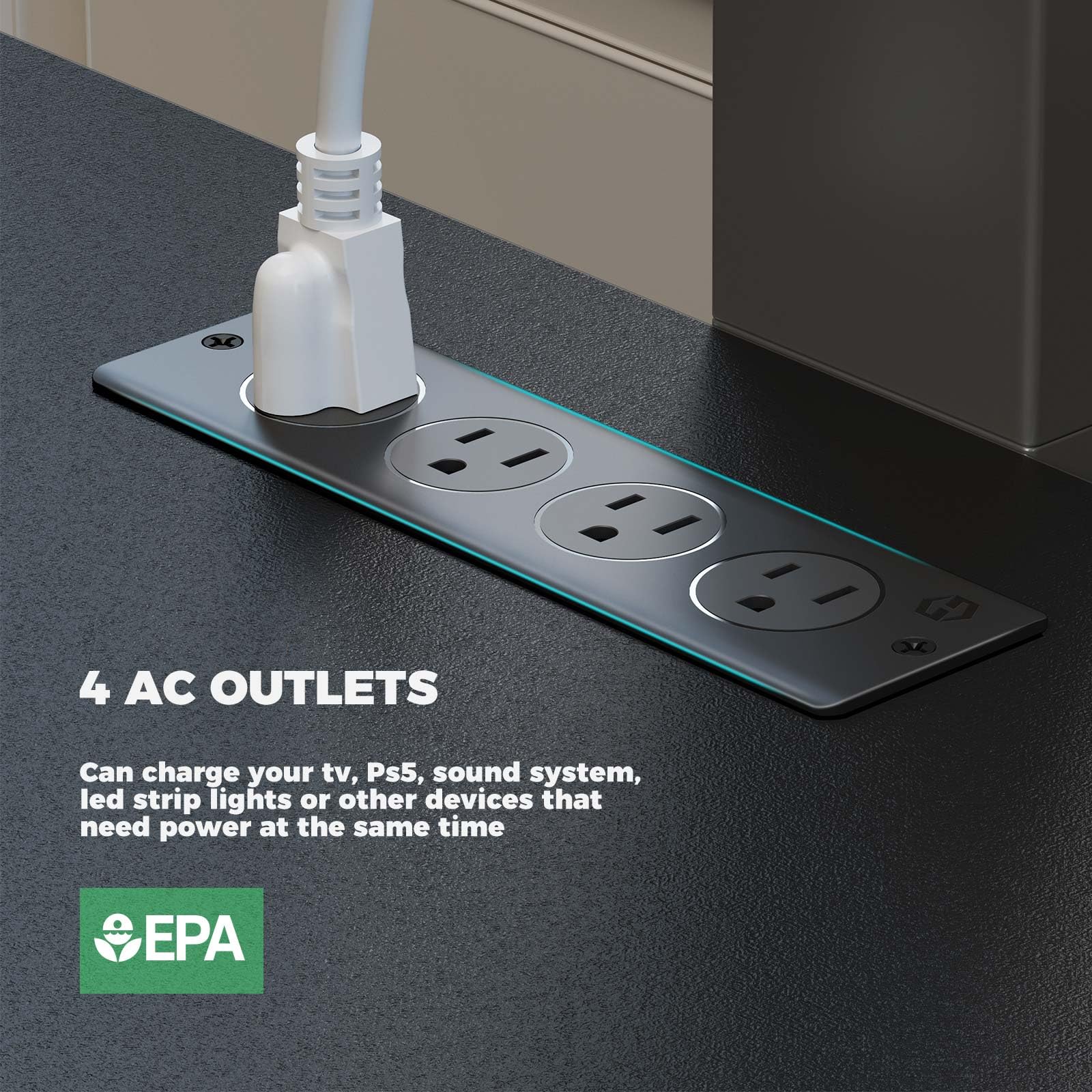 - TV Stand with Charging Station and Wire Management: This entertainment center with power outlets built-in 4 standard plug outlets, so it can meet the needs of different equipment, which is convenient to charge your TV, DVD, WiFi router, and etc. The TV mount offer wire management to keep your cords from getting tangled and make it easy to plug in all of your devices