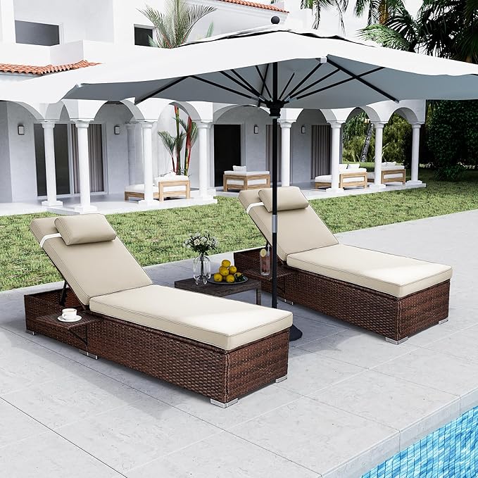 - Crafted with premium PE Rattan, our poolside recliners blend modern aesthetics with outdoor functionality. The intricately woven texture offers while maintaining airflow for cool relaxation - perfect for tropical climates or sunny backyard retreats.