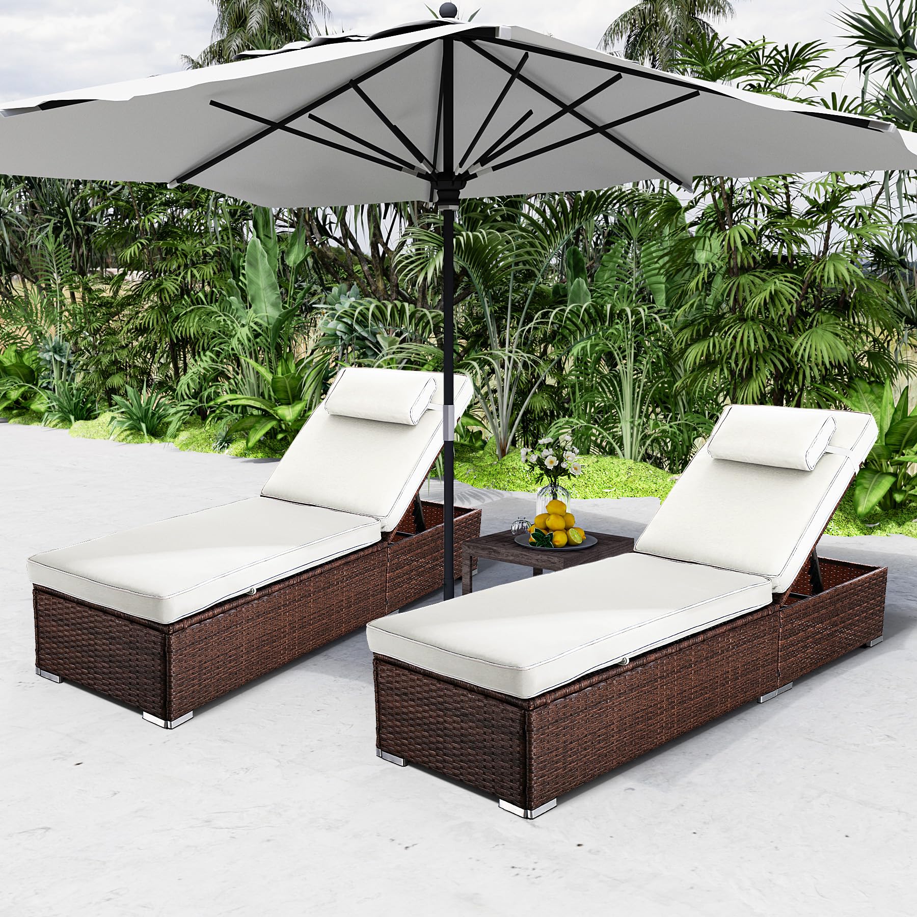 Outdoor PE Wicker Patio Lounge Chairs Set of 2, Outside Rattan Pool Lounge Chair