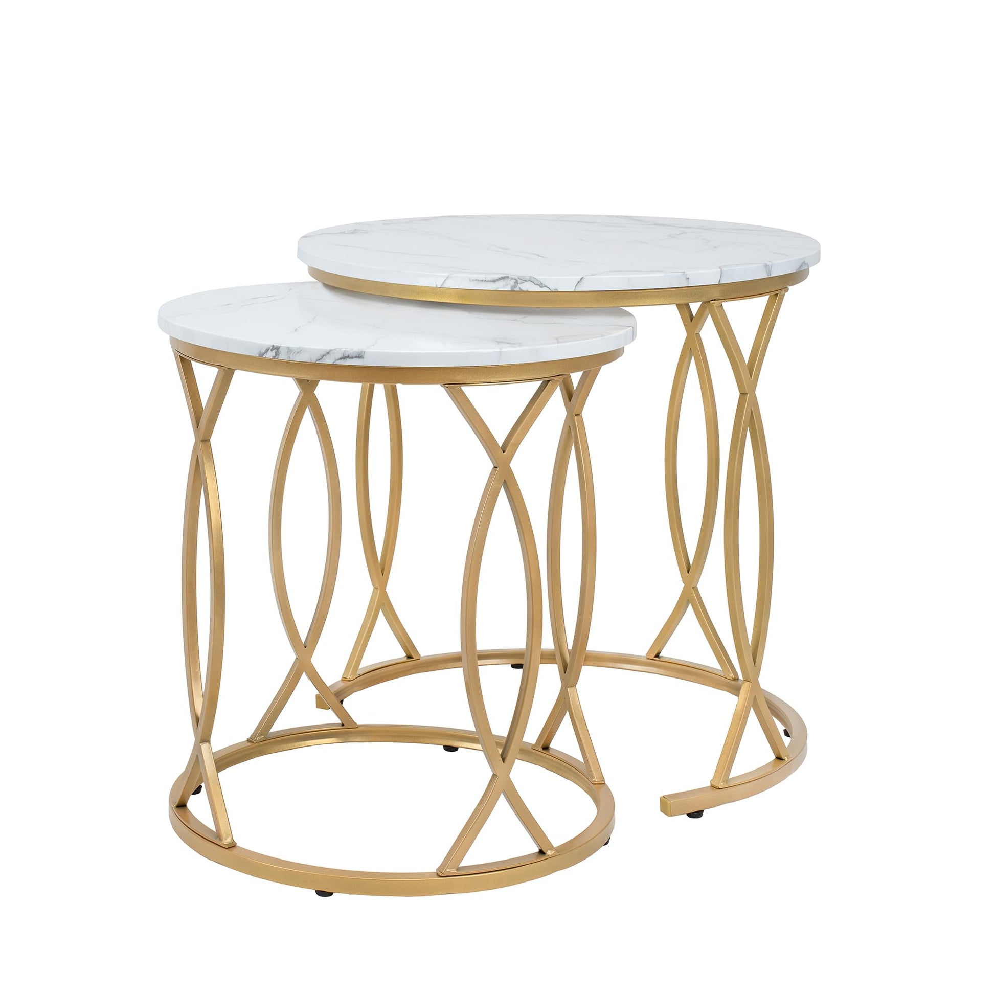 Gold Nesting Coffee Table Set of 2, Round Coffee Tables for Living Room