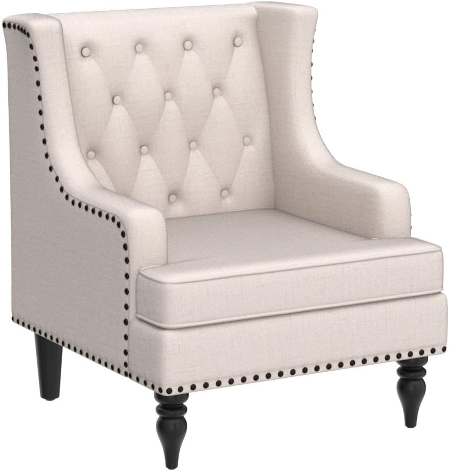 - REMOVABLE CUSHION Featuring high-density foam, this accent chair has armrest, tufted wingback, four base legs, and padded cushions. Feels comfortable to read, chat, and relax while sitting.