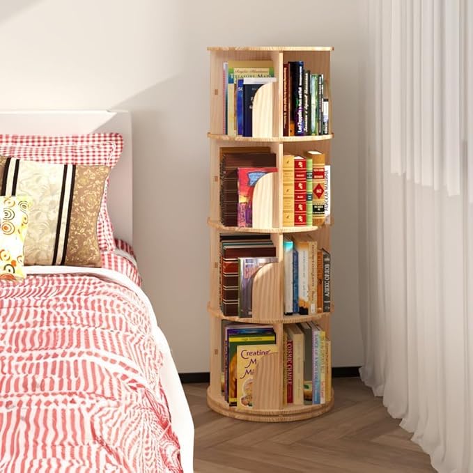 Rotating Bookshelf 360 Degrees, Storage Display Rack Floor Standing Bookcase for Kids&Adults