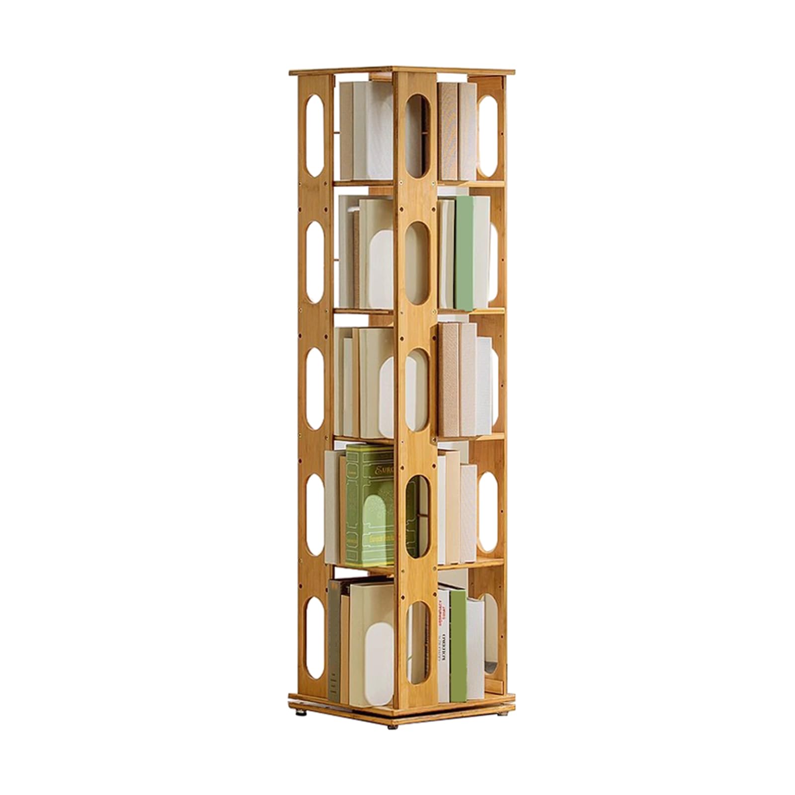 - 360° Rotating Bookshelf: Our home bookshelf is equipped with a stainless steel ball turntable, allowing it to rotate freely 360°. This practical and convenient design makes it easy to access items from any angle. Additionally, it has a small footprint, covering an area of only 0.1㎡, which helps save space in your home.