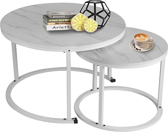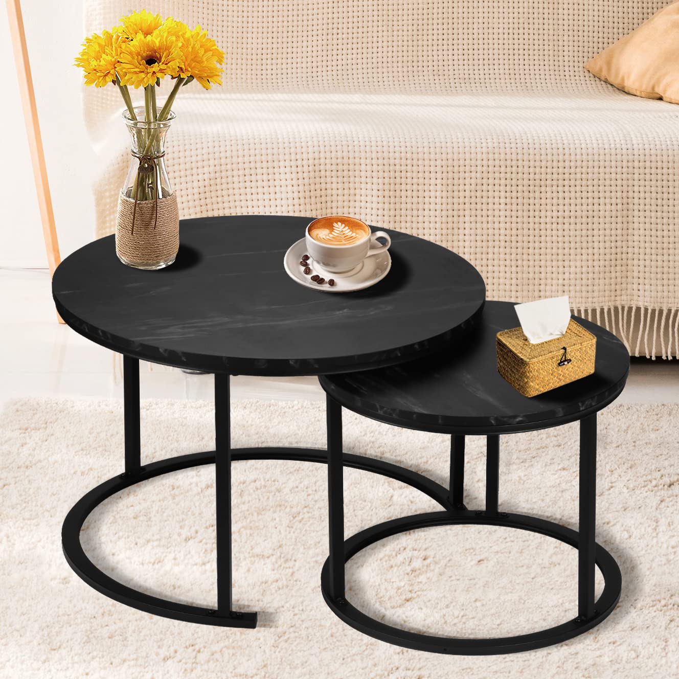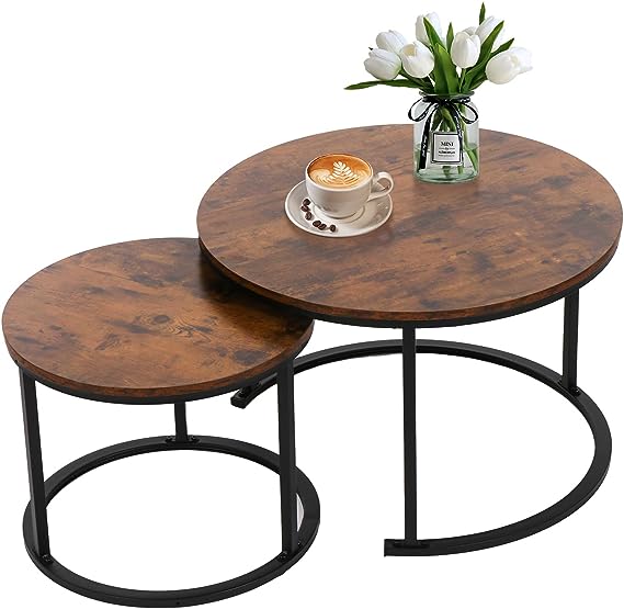 - Large Storage Space With a round table top of 27.56", this nesting coffee table has a spacious surface for daily use, and low-level open shelves can store your different types of items.