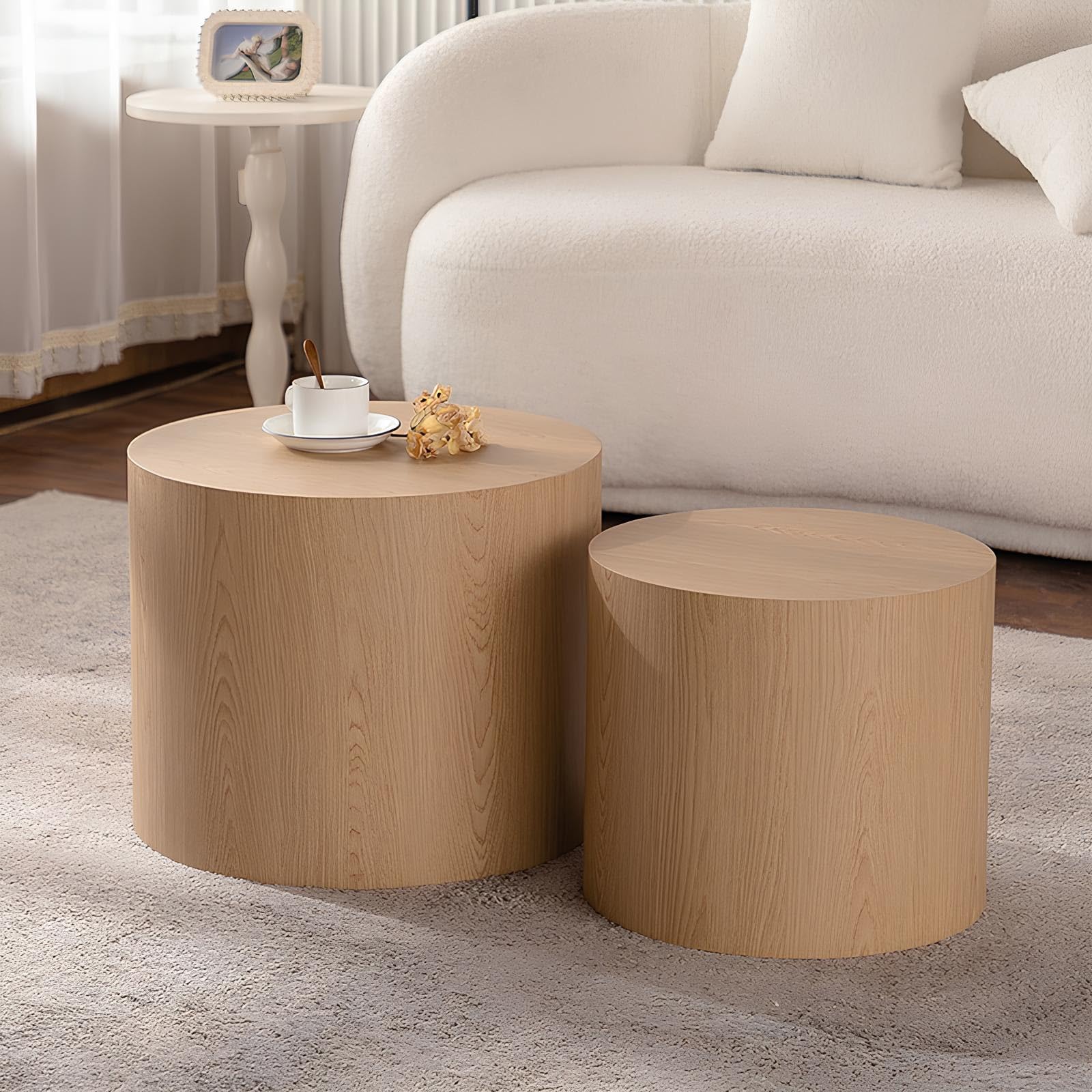- [Minimalist Nesting Coffee Table Set] The wooden circle side table has a simple and natural shape, with a fashionable and round design. This modern design adds a touch of sophistication and elegance, making it a perfect centrepiece for any room.