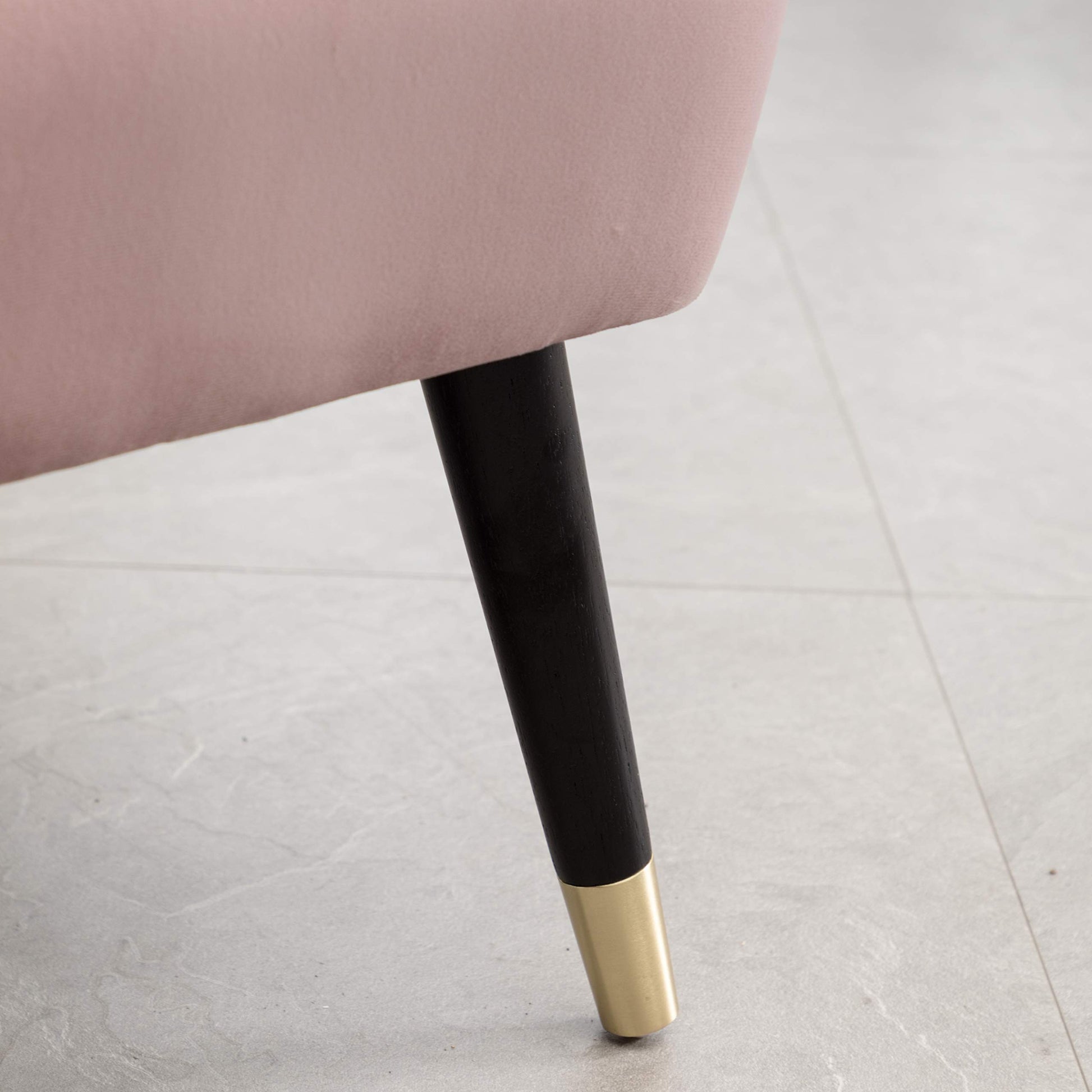 - Solid rubberwood legs finished in a rich black color with the gold-tone metal electroplated on the end