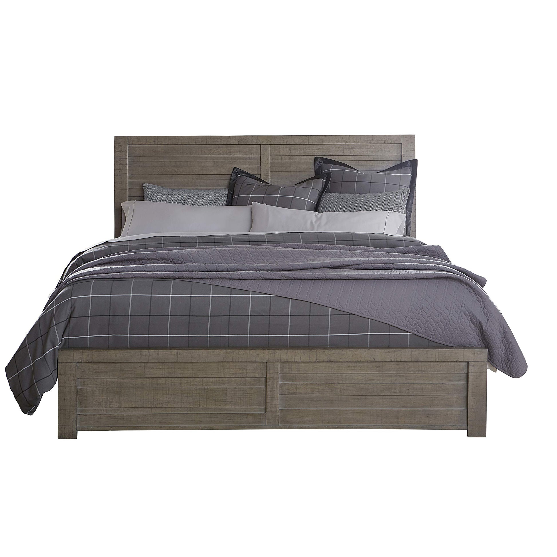 - Straightforward lines and a distressed gray wash finish give the bed a casual,transitional attitude
