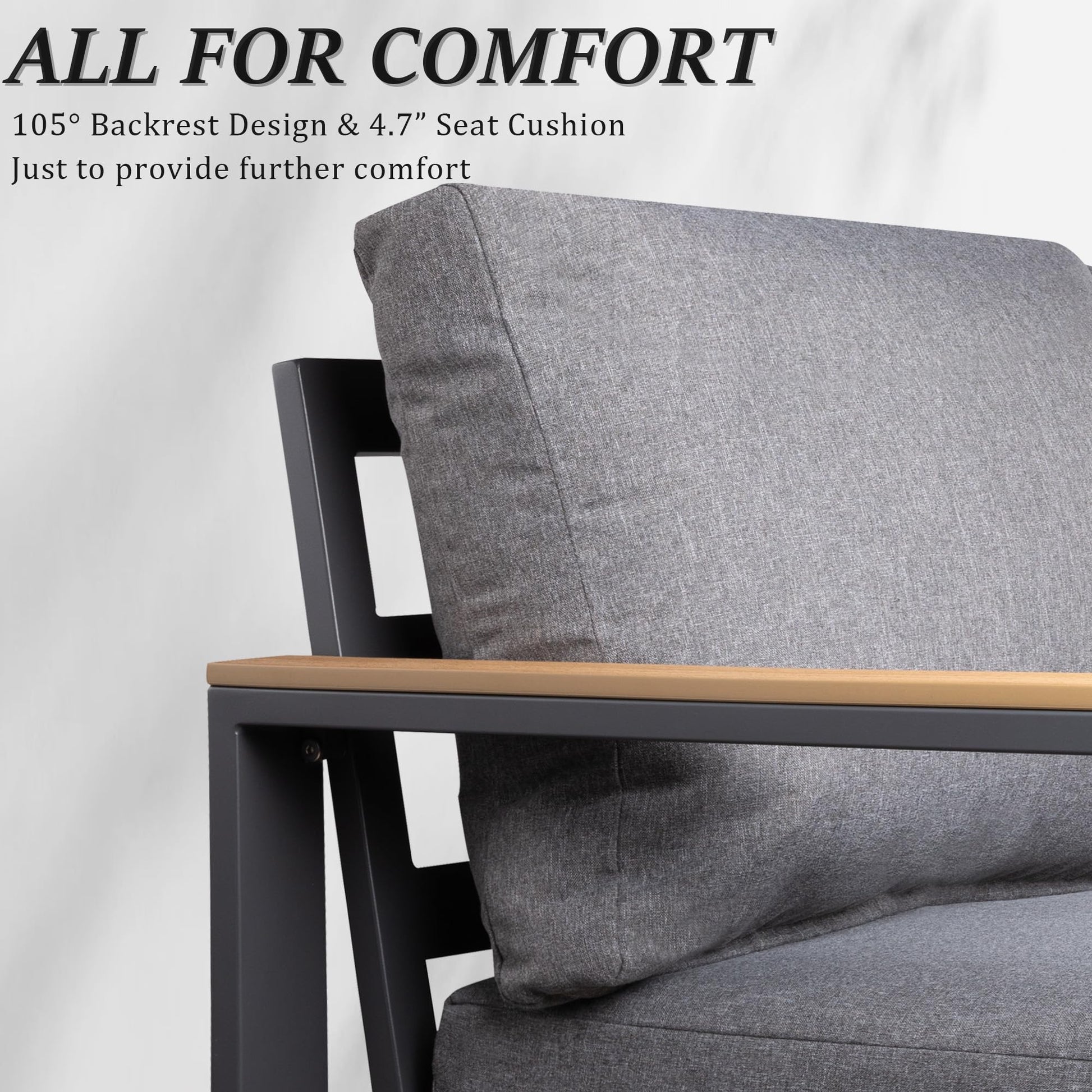- Effortless Assembly: This metal outdoor furniture set includes two armchairs, a loveseat, a three-seat sofa, a coffee table and cushions. Detailed and easy-to-follow instructions and necessary tools are provided for quick and hassle-free installation.