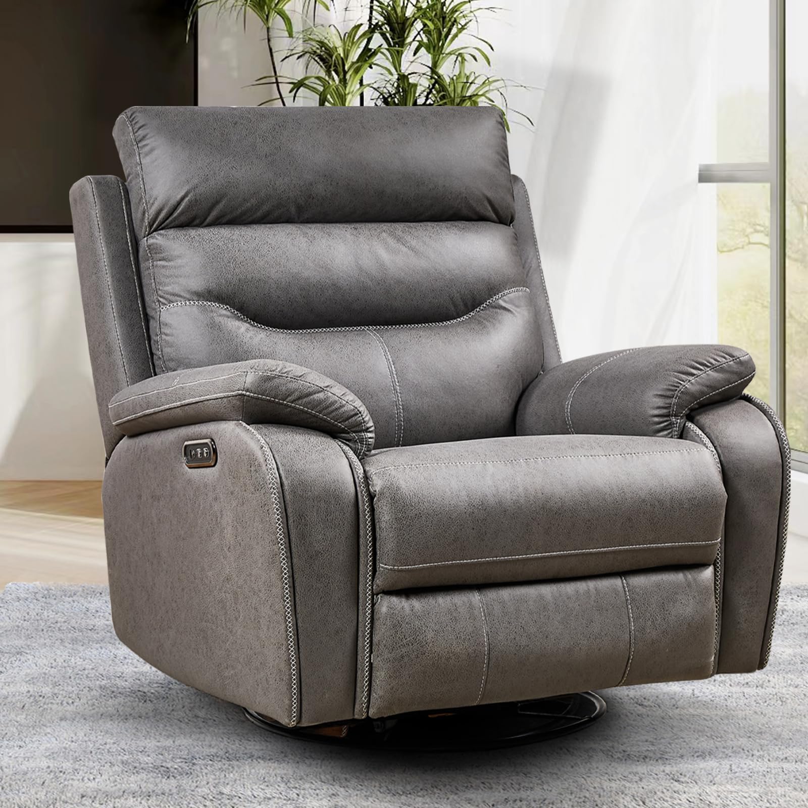 Dual OKIN Motor Power Recliner Chairs Swivel Rocker Recliner with One-key Reset Button