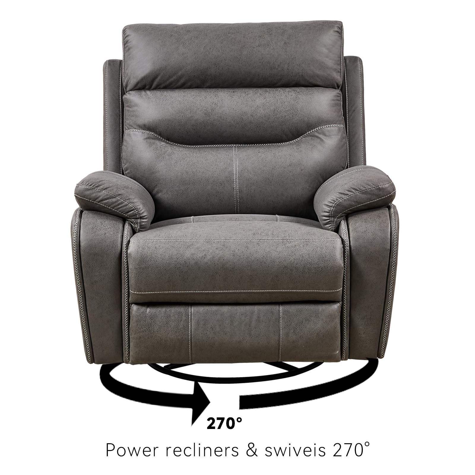 - The power glider swivel rocker recliner chair is designed with comfort in mind, featuring a 270-degree swivel, glide, and quiet, smooth recline function that can be operated with the push of a button. The position lock of the lift chair is INFINITE, so you can recline to almost any angle within the range (90° - 135°) and stop it at any time. The 90-135° recliner angle offers flexibility and versatility for maximum comfort.