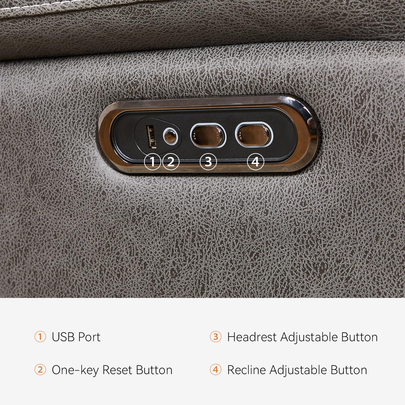 - This electric recliner chairs has a One-Key Reset Button, When you want to restore the adjusted chair to its original position, just press the reset button. The recliner chair has a USB charging function allowing you to keep your devices charging while taking a nap. The Recliner Chair includes an extended footrest for complete relaxation, making it perfect for activities such as watching television, sleeping, and reading.