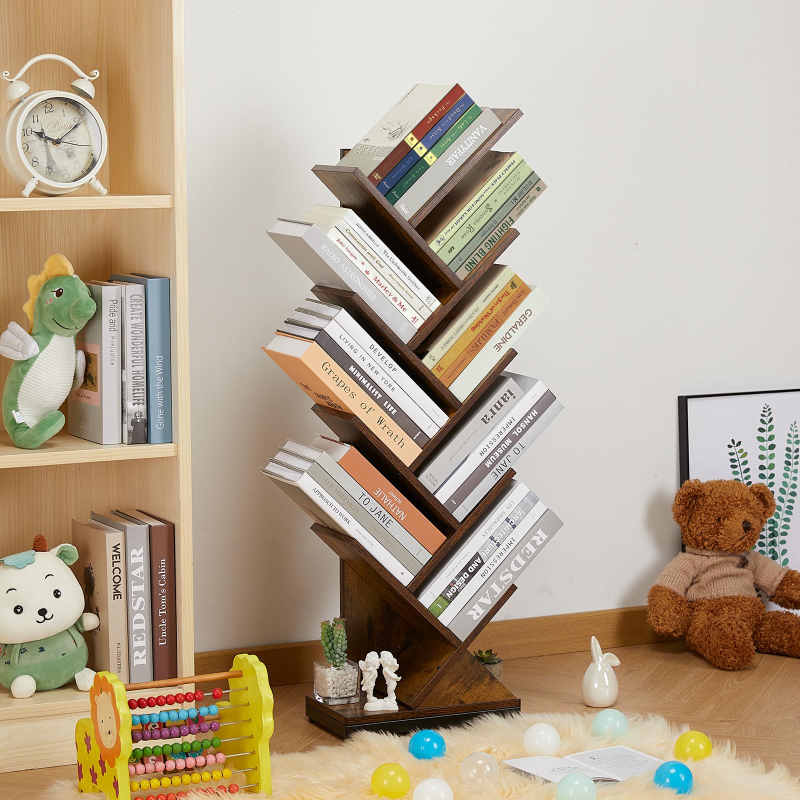9-Shelf Tree Bookshelf, 38.4-Inch Retro Floor Standing Bookcase Display for CDs/Magazine/Books