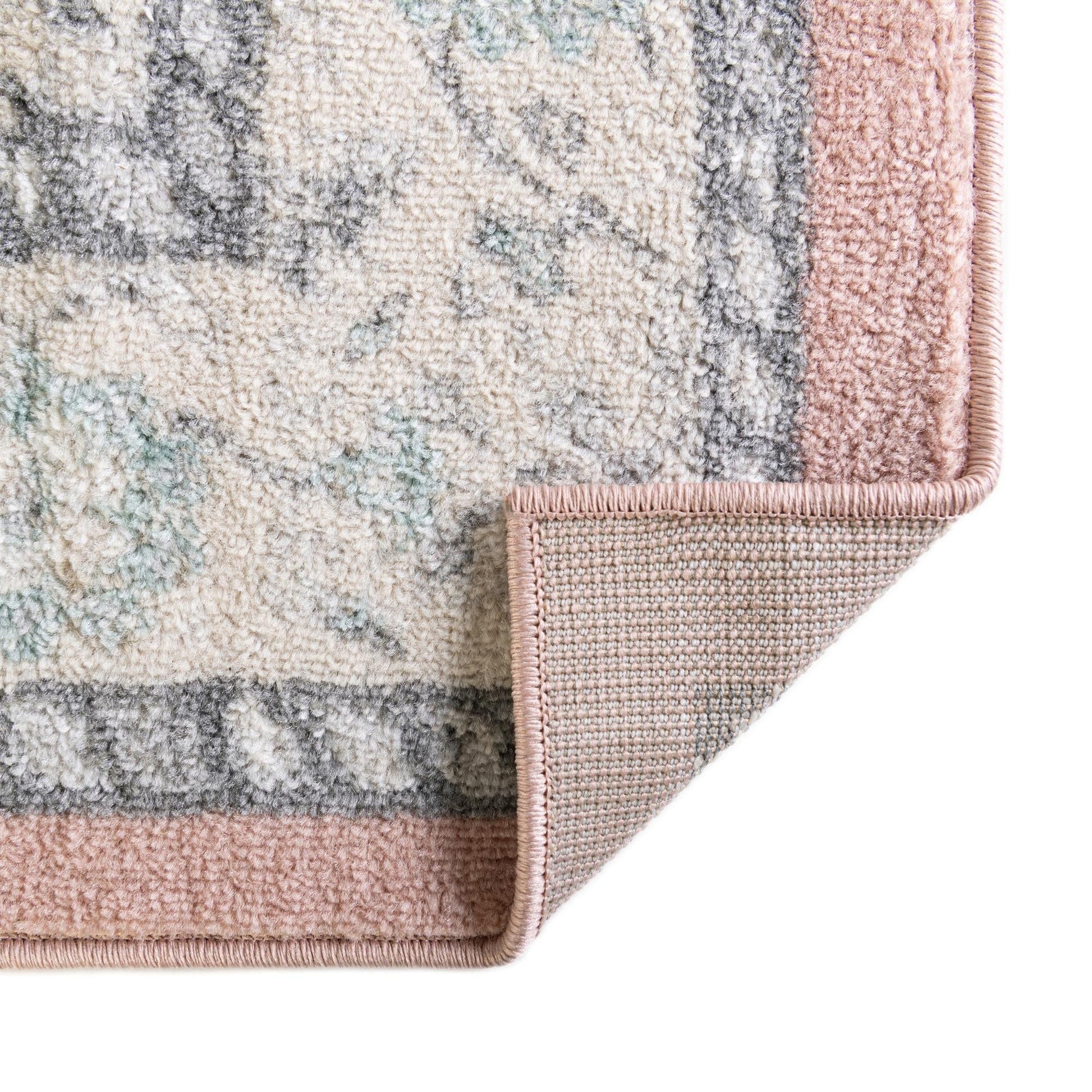 - The soothing hue of this rose rug is light and romantic. It's great for more relaxed social spaces.