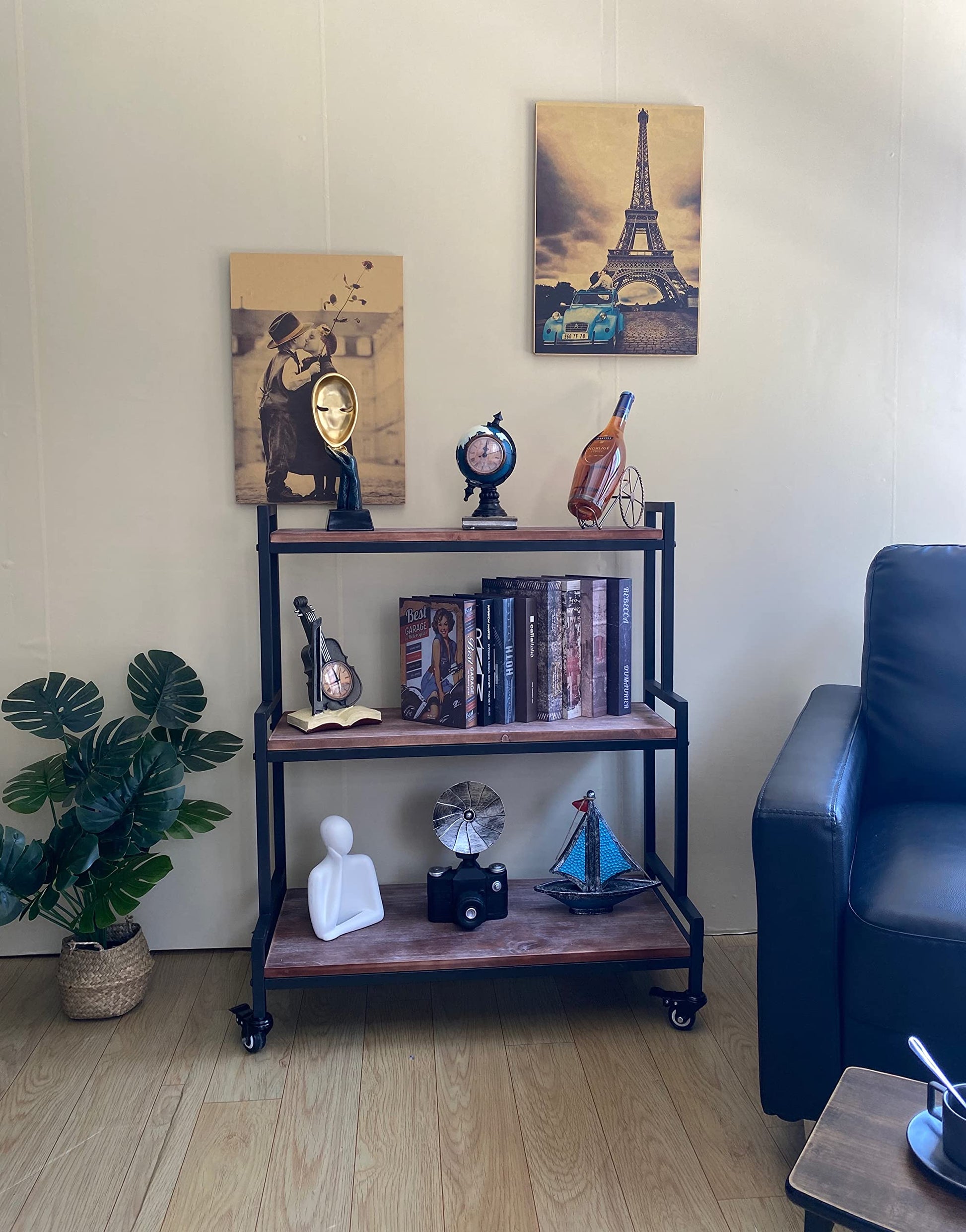 | Special Features: | Rolling Wheels, Rustic Wood Finish, Metal Frame |