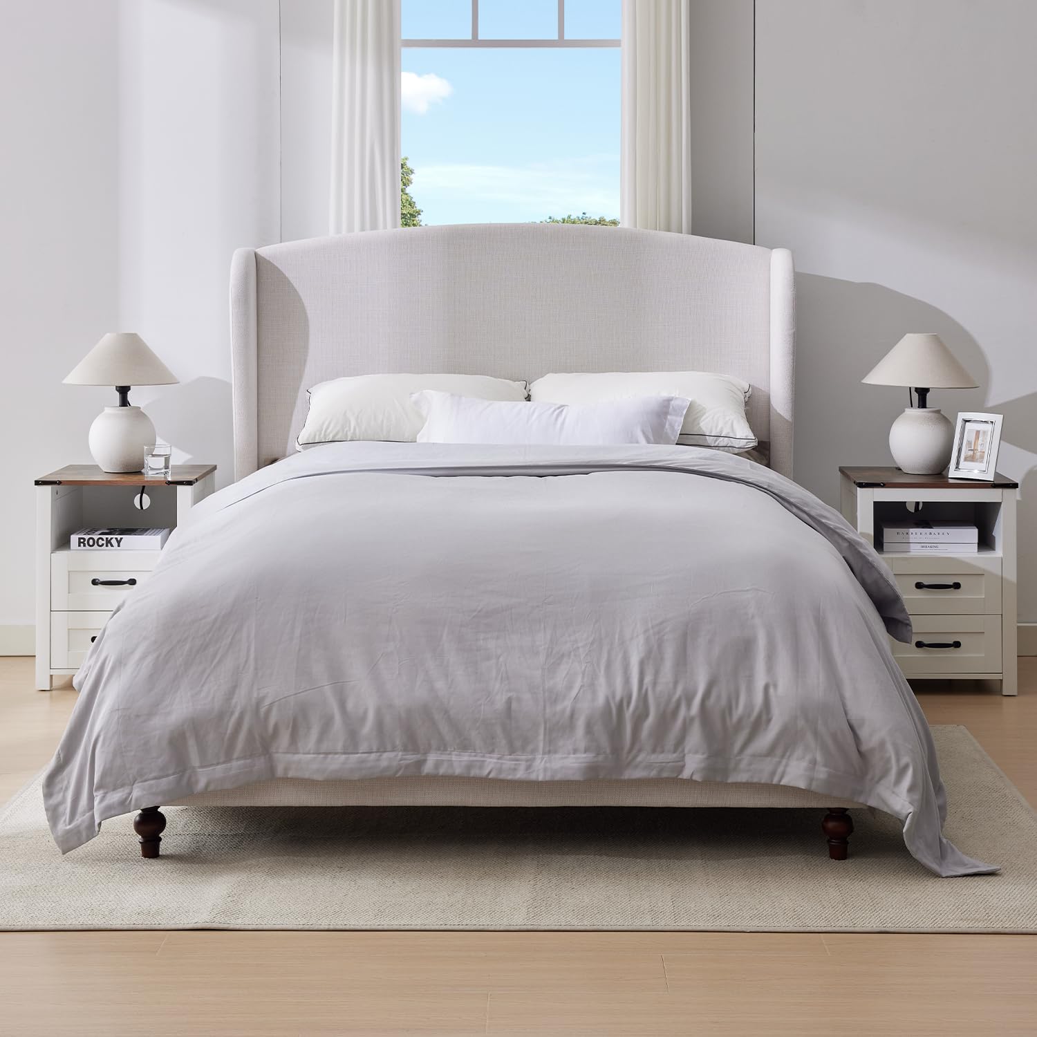 - The nightstand’s thick wooden legs and smooth metal handles ensure excellent stability and durability, making it a practical bedside cabinet that complements your farmhouse decor