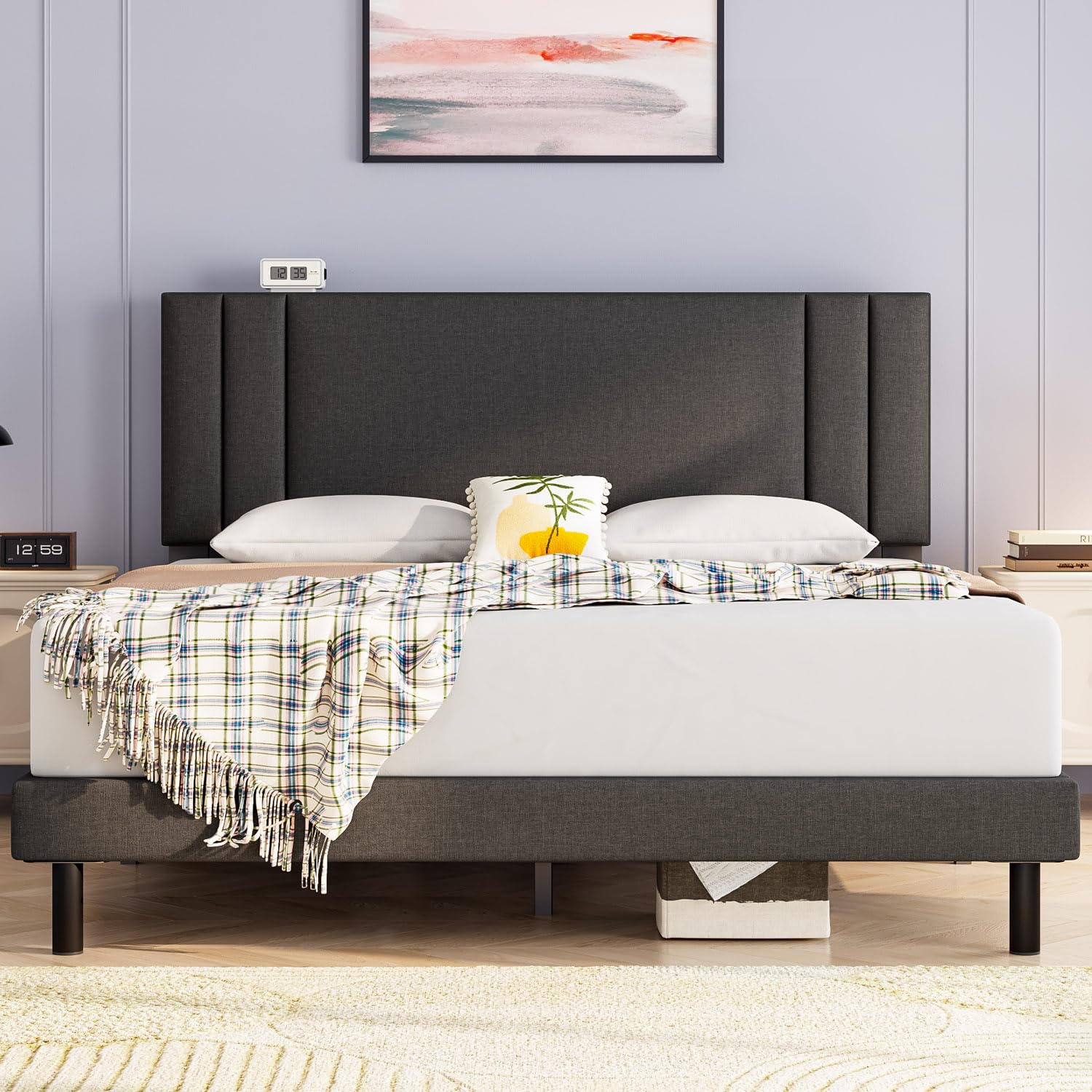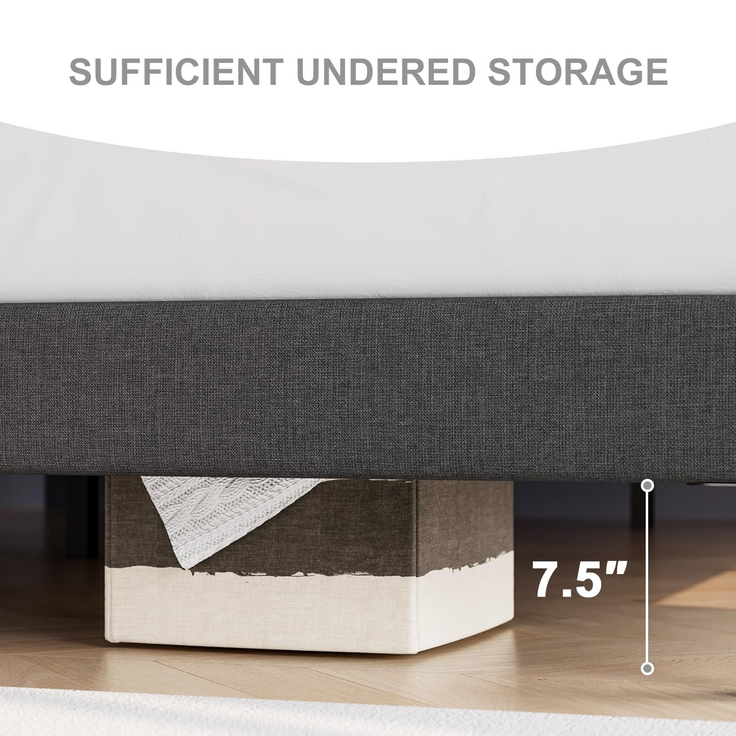 - Comfortable Experience: Our upholstered headboard of the king size bed frame is made of high-quality linen fabric and wrapped with 1.2-inch high resilience memory foam. the bed frame features padded side rails that provide supportive comfort while relaxing, making it perfect for any bedroom style.