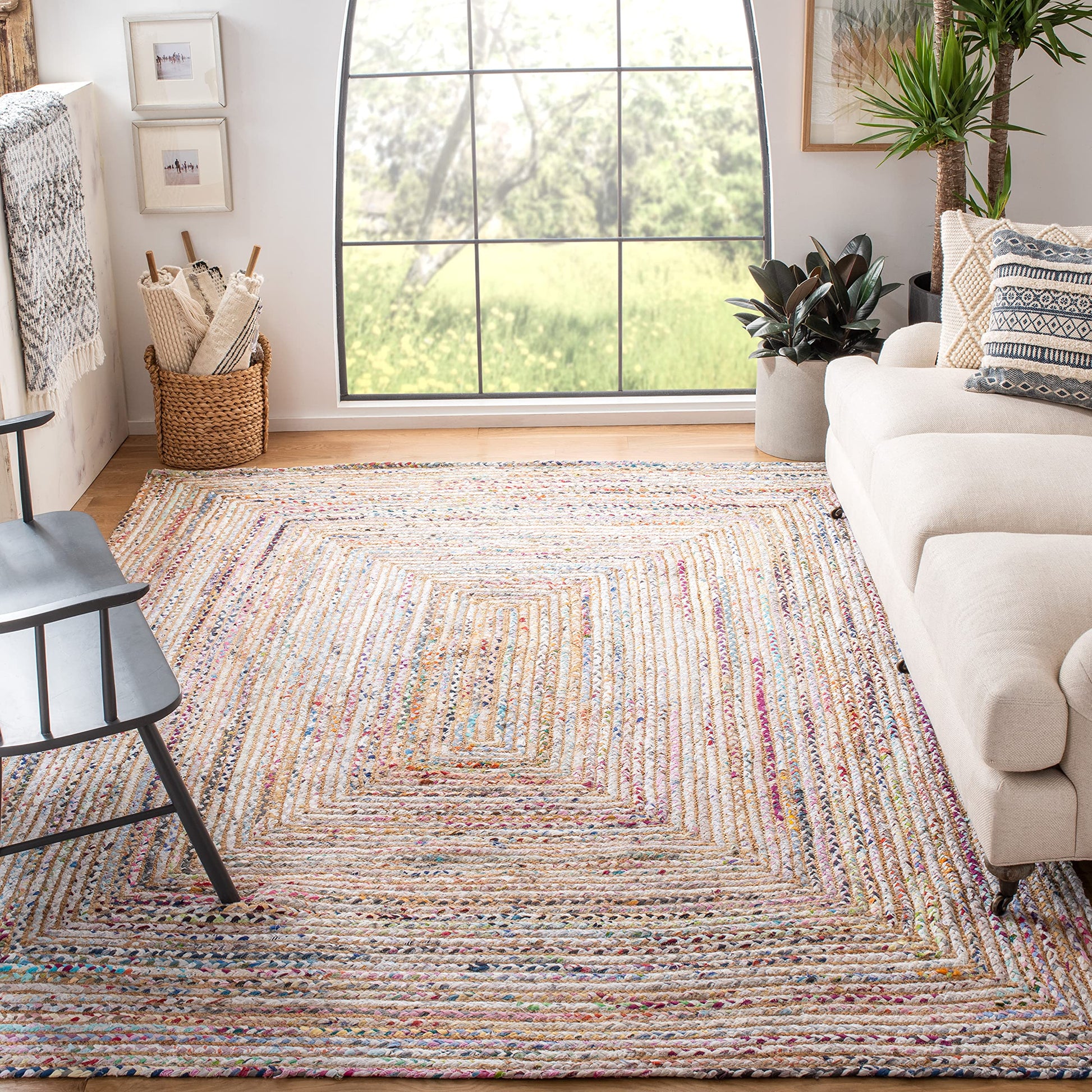 Cape Cod Collection Area Rug - 9' x 12', Beige & Multi, Handmade Boho Braided Jute