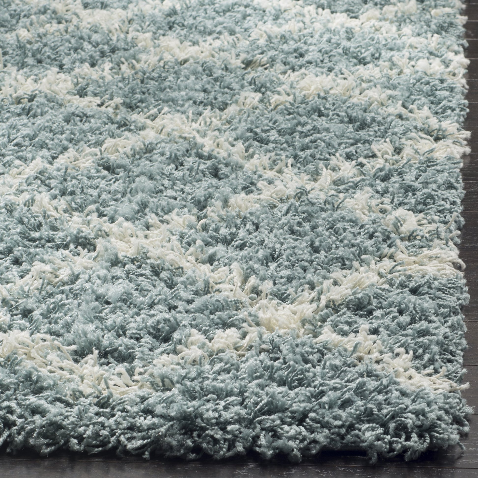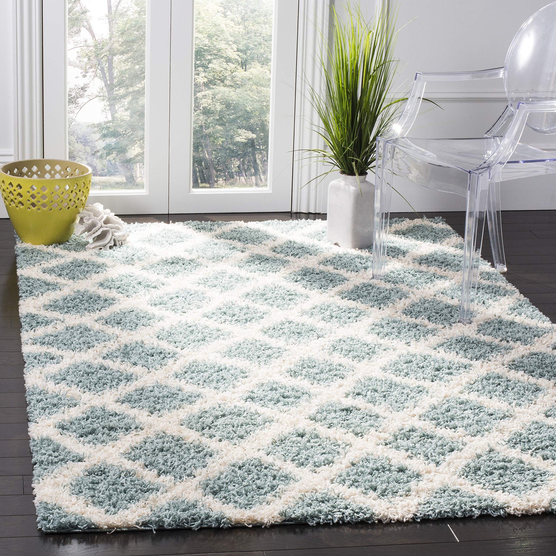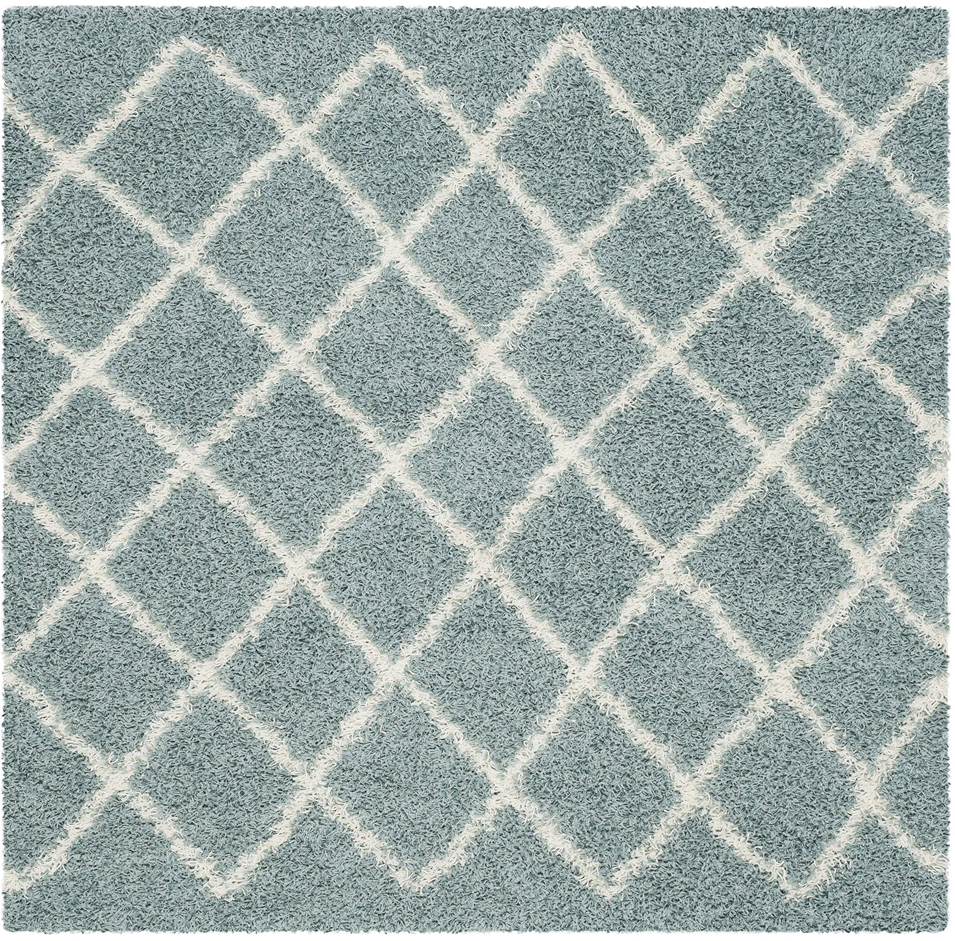 Dallas Shag Collection 8' Square Seafoam / Ivory SGD258C Trellis Non-Shedding