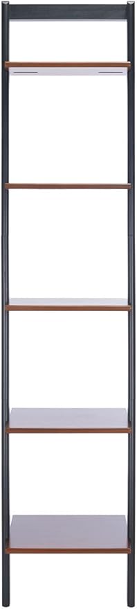 - Five (5) shelves of varying widths are complemented by a ladder-styled frame