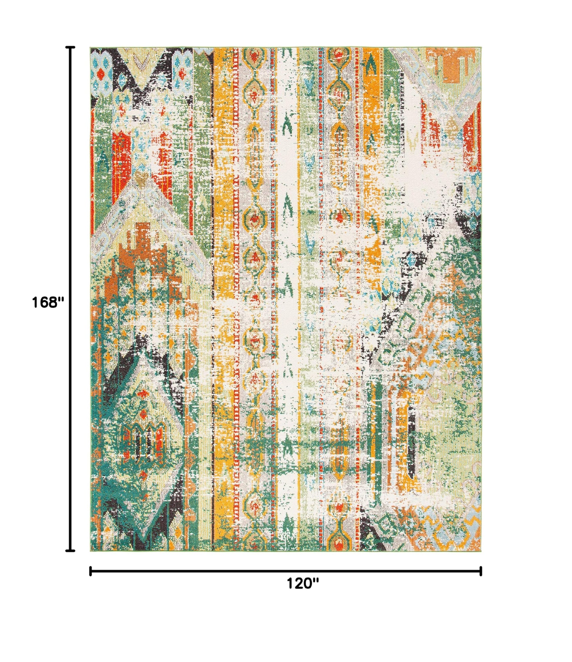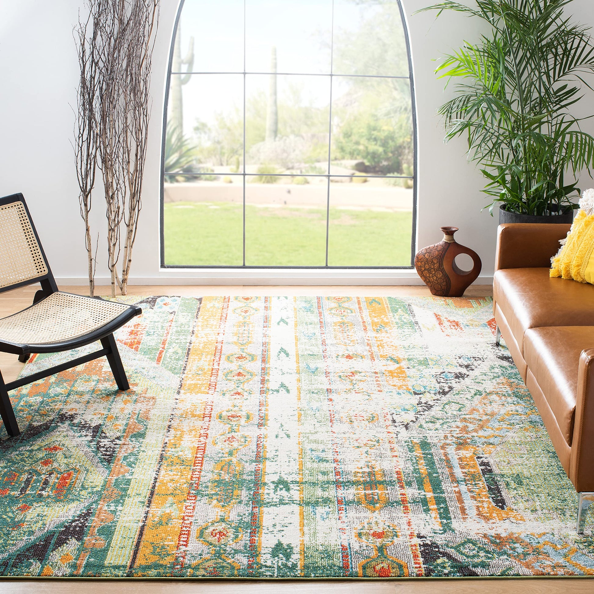 SAFAVIEH Madison Collection Area Rug - 10' x 14', Green & Orange, Boho Chic Tribal Distressed Design, Non-Shedding & Easy Care, Ideal for High Traffic Areas in Living Room, Bedroom (MAD422Y)