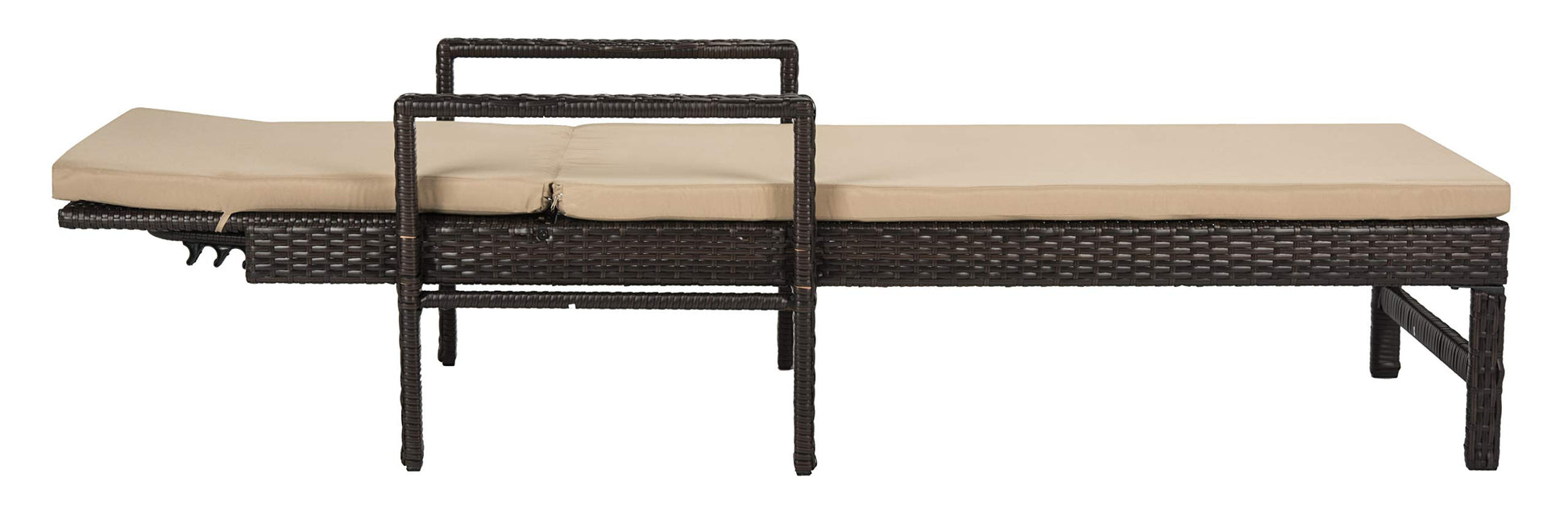 Outdoor Collection Alma Brown Rattan/Beige Cushion Adjustable Chaise Lounge Chair