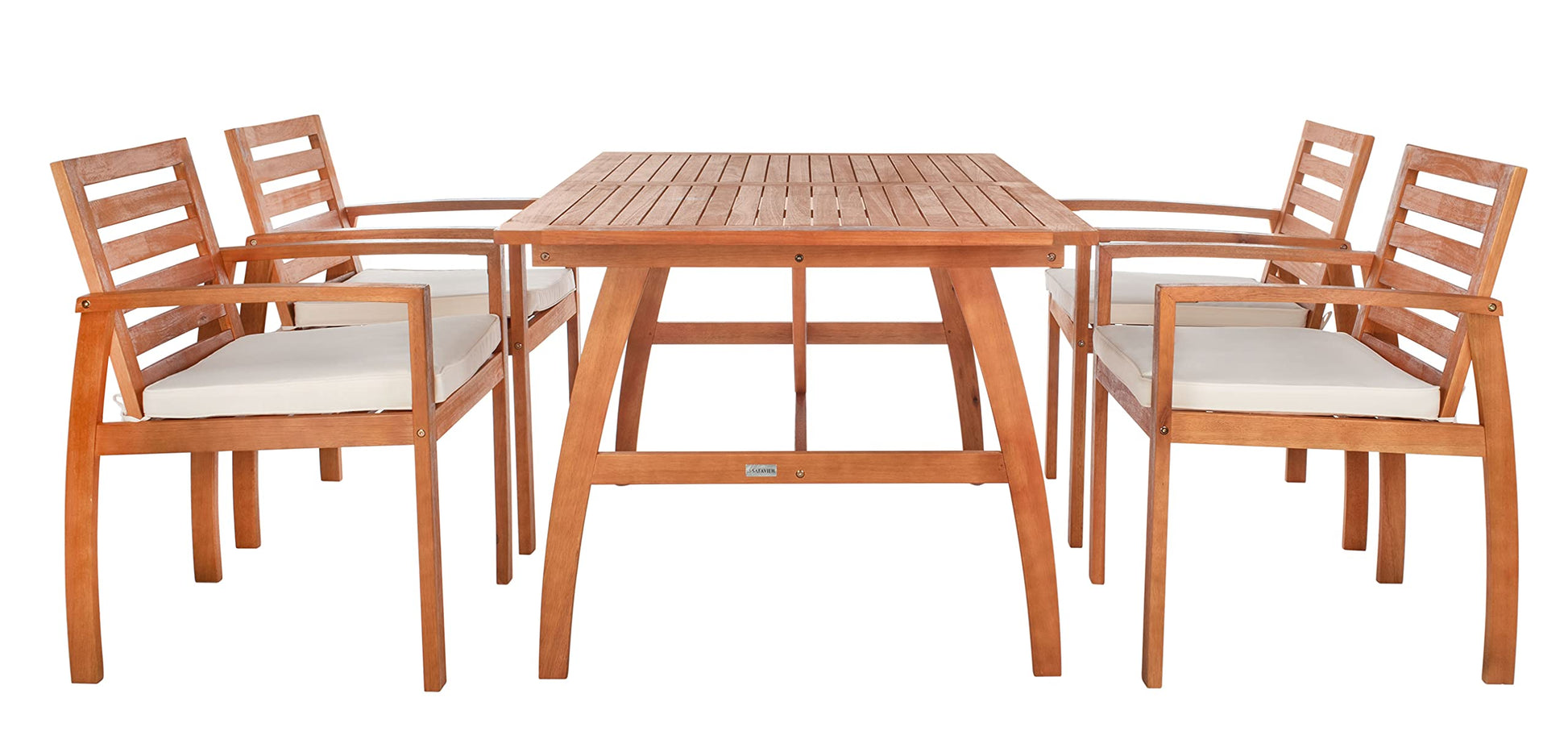 - Constructed with natural eucalyptus wood with complimentary beige cushions