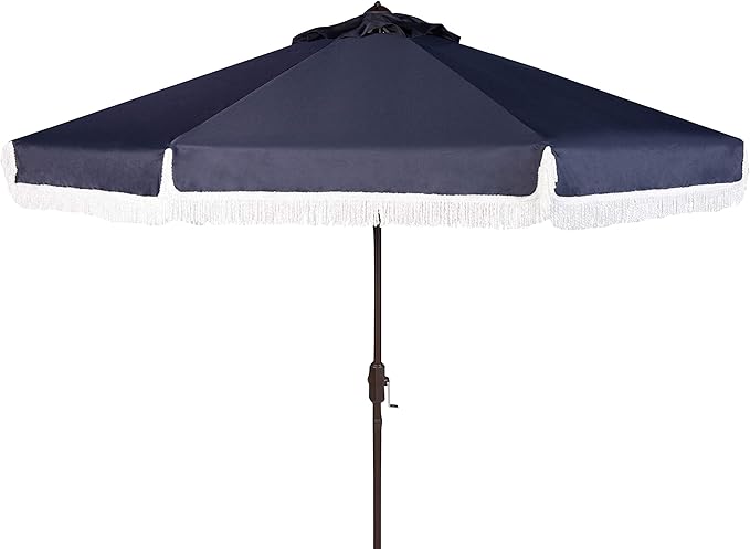 PAT8008A Collection Milan Fringe Navy and White 9Ft Crank Outdoor Push Button