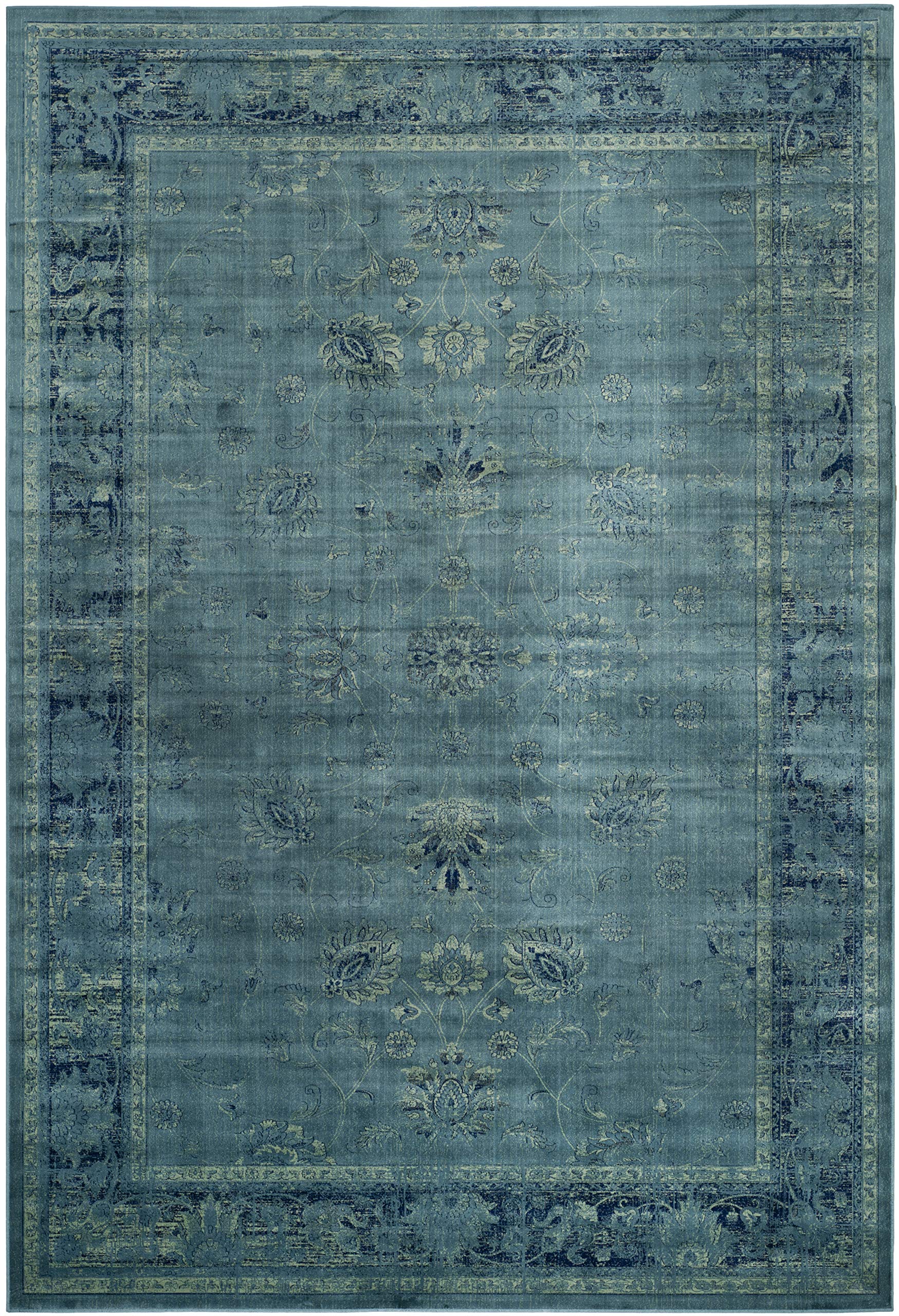 Vintage Collection Area Rug - 10' x 14', Turquoise & Multi, Oriental Distressed Viscose Design