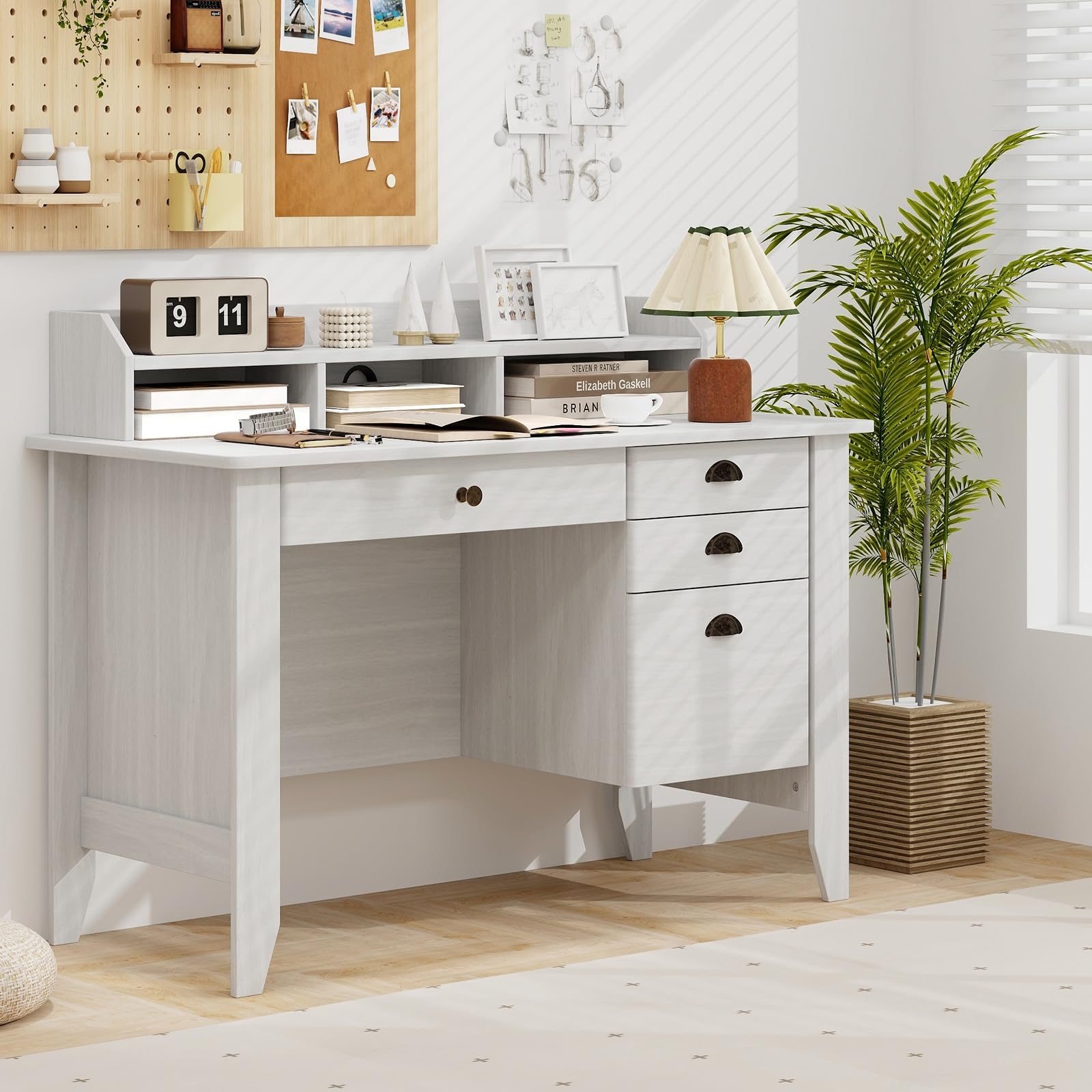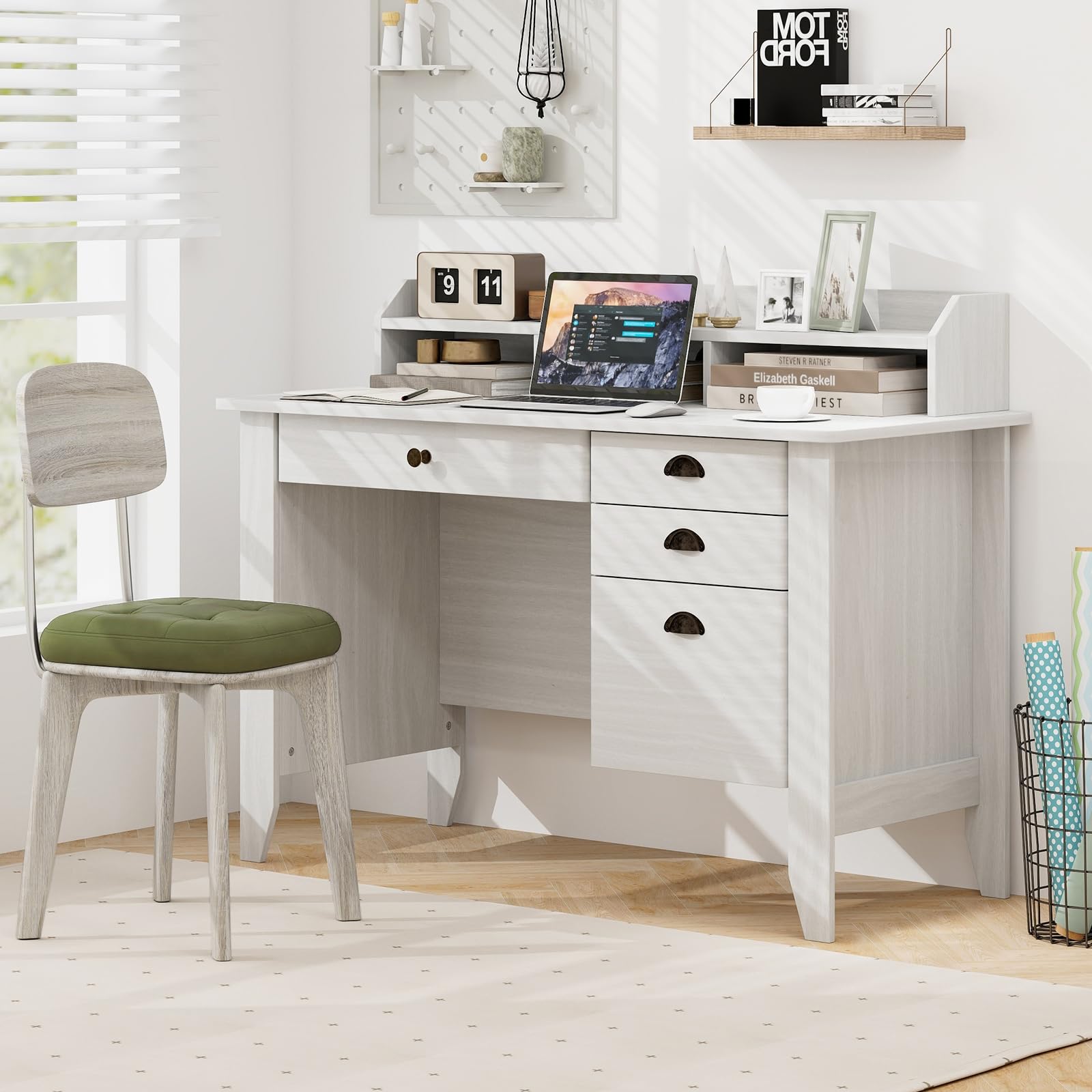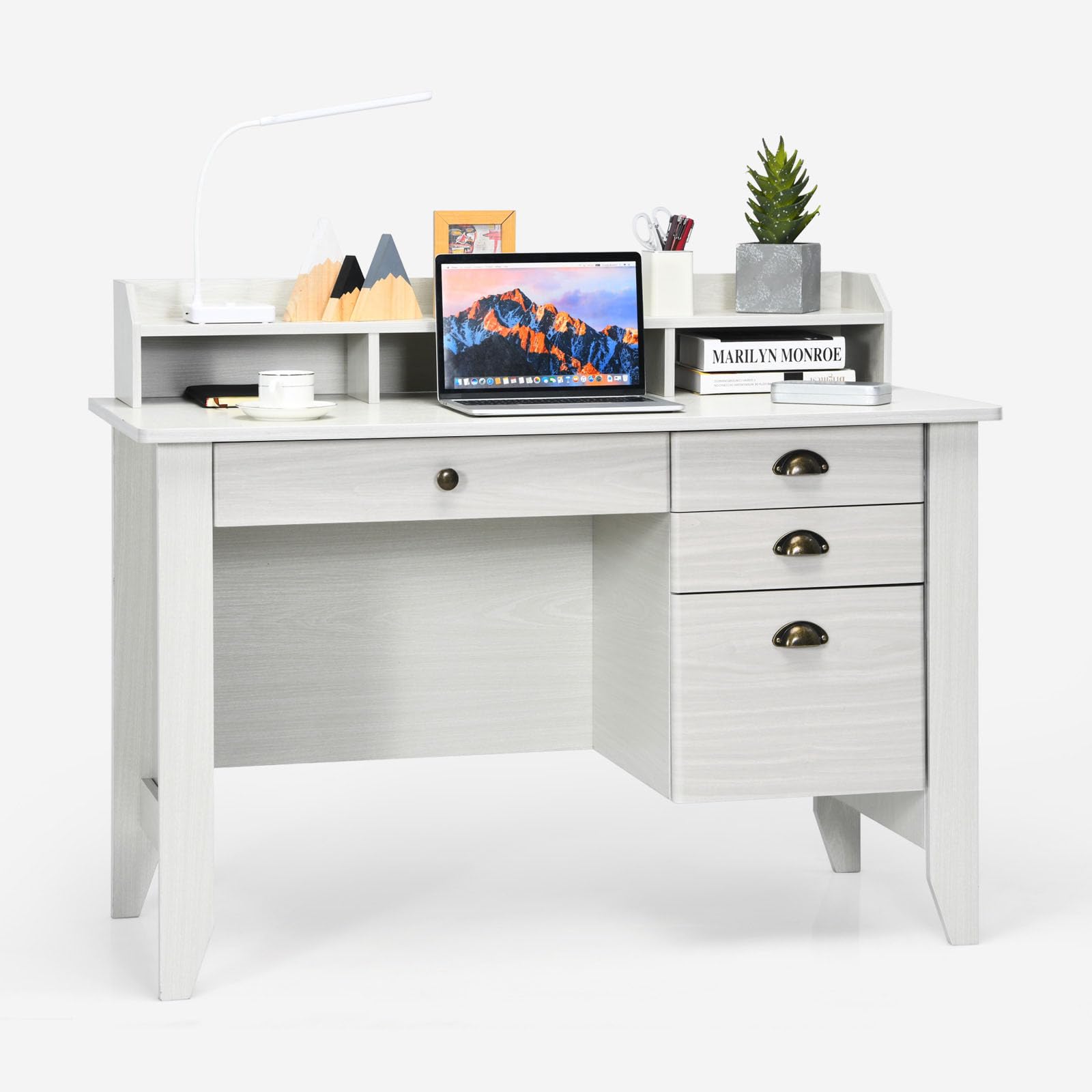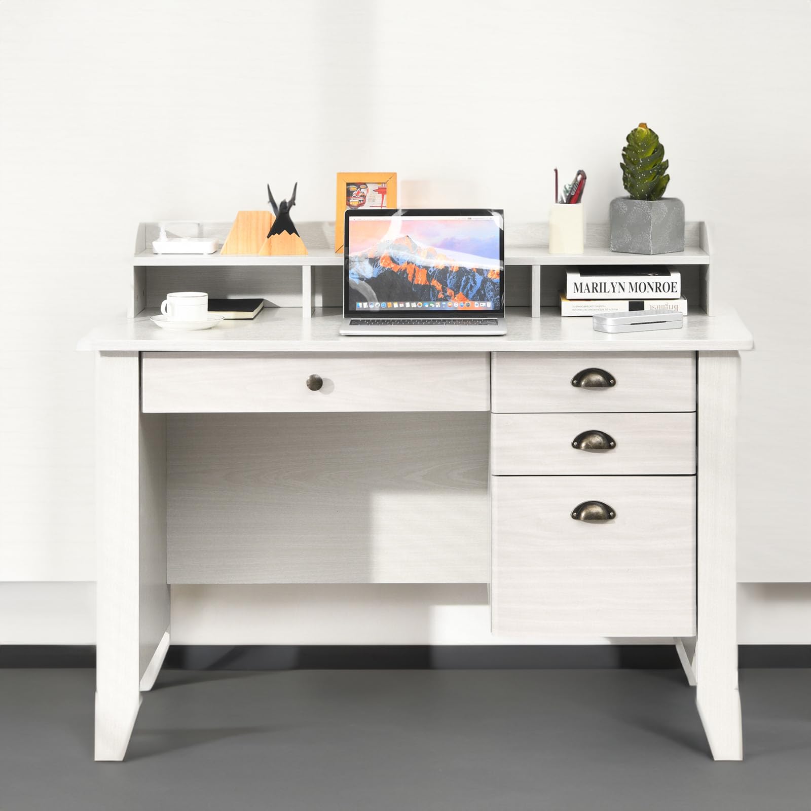 Computer Desk with 4 Storage Drawers and Hutch Wood Executive Table for PC Laptop