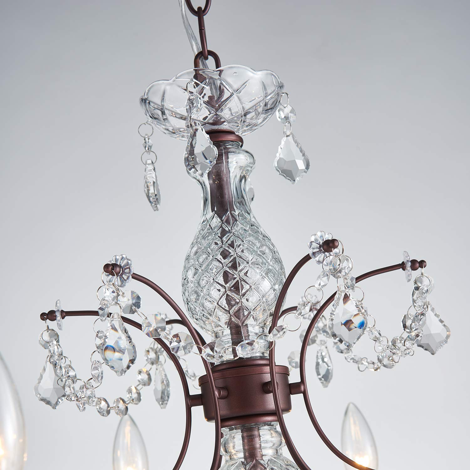 - The rustic chandelier light fixture is solidly made by glittering hanging clear crystal and metal, and could light up your room extremely and widely to create a superior and classy atmosphere in your living room, dining room, bedroom, foyer or any other dry place.
