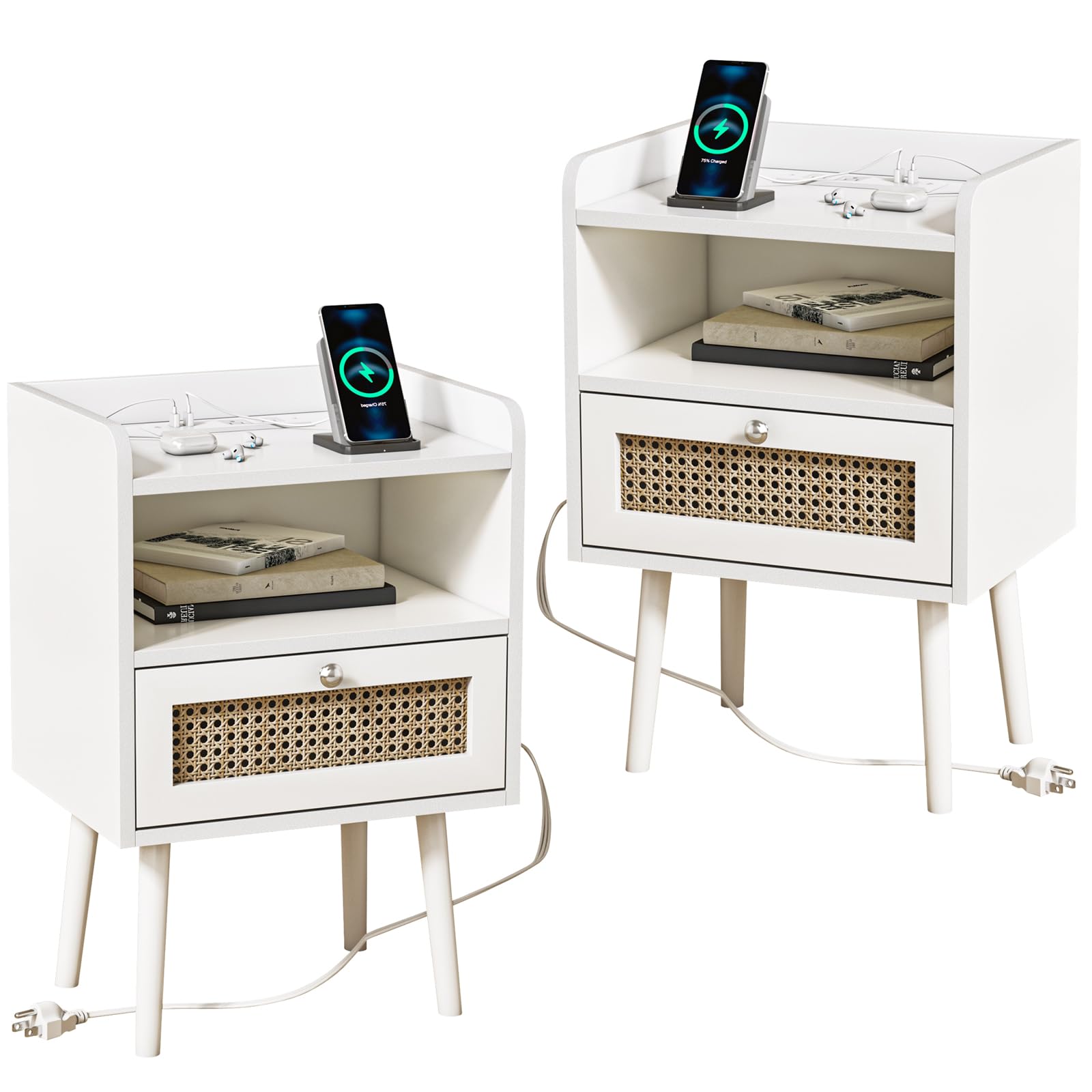 White Nightstand Set of 2 with Charging Station
