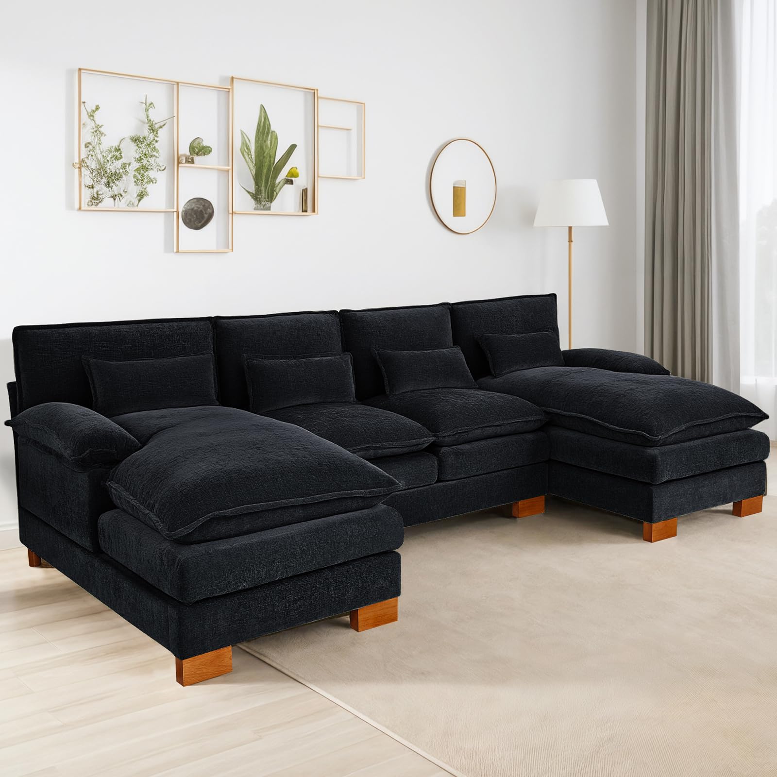 112.6" U Shaped Modular Sectional Sofa, Modern Chenille Cloud Couch