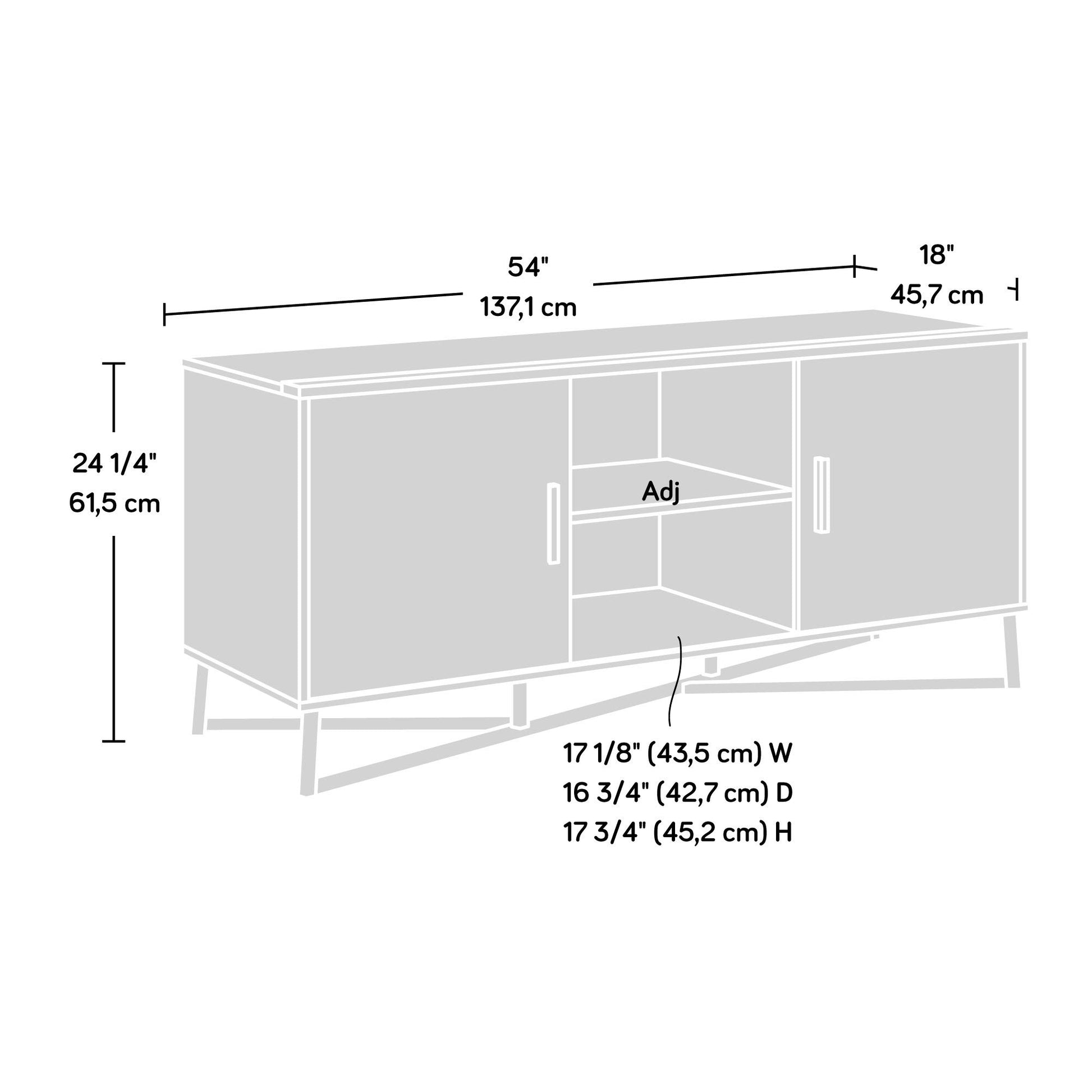 - Assembled Dimensions: L: 53.98" x W: 17.99" x H: 24.21"