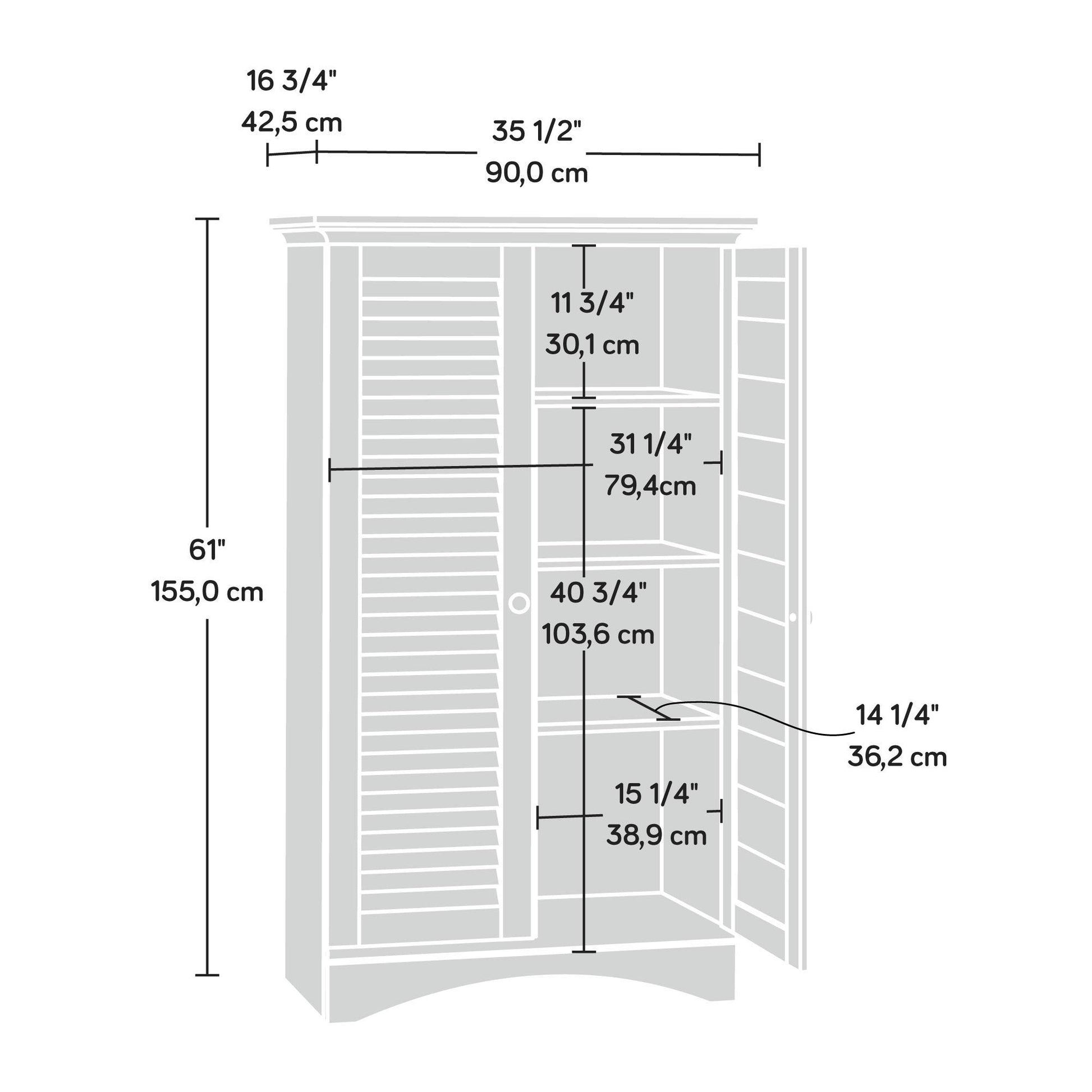- Assembled measurements are 35.43 Inch wide by 16.75 Inch deep by 61 Inch tall; limited 5-year manufacturer warranty