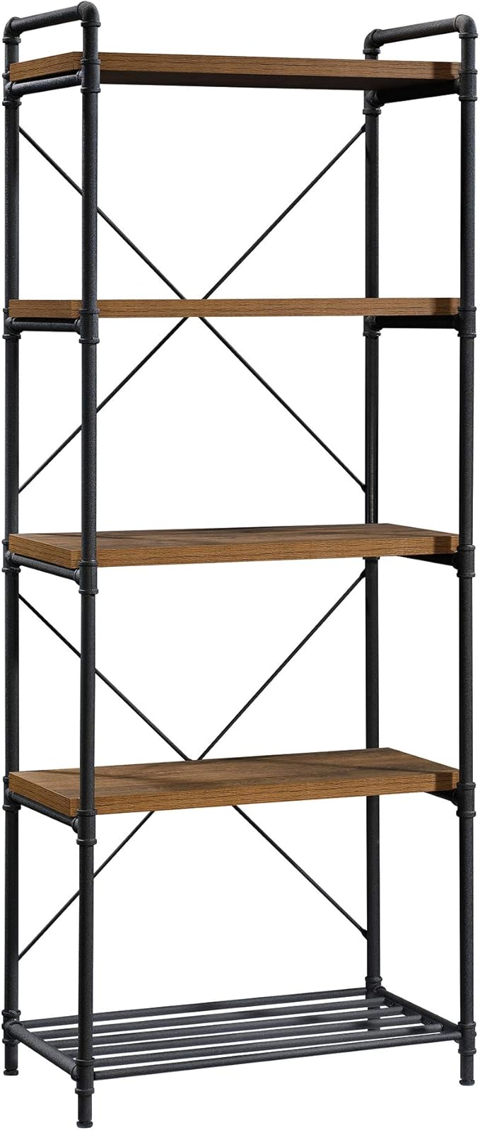 Iron City Tall Bookcase/Book Shelf, Checked Oak Finish