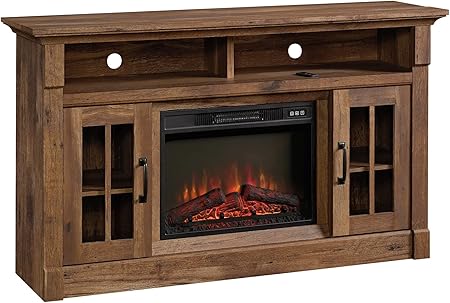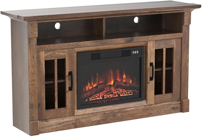 - Electric firebox with remote control and built-in overheat protection heats up to 400 square feet