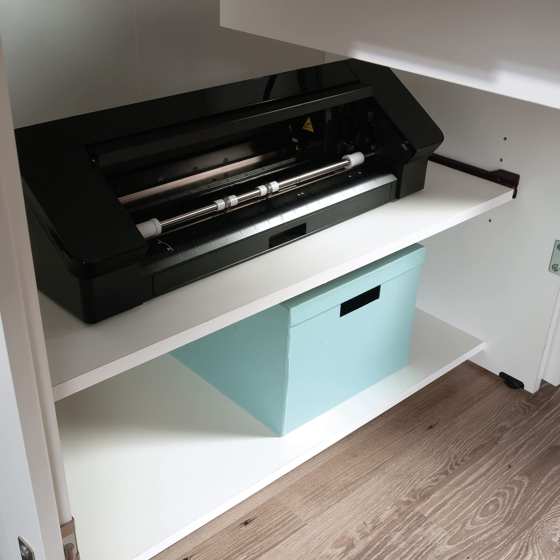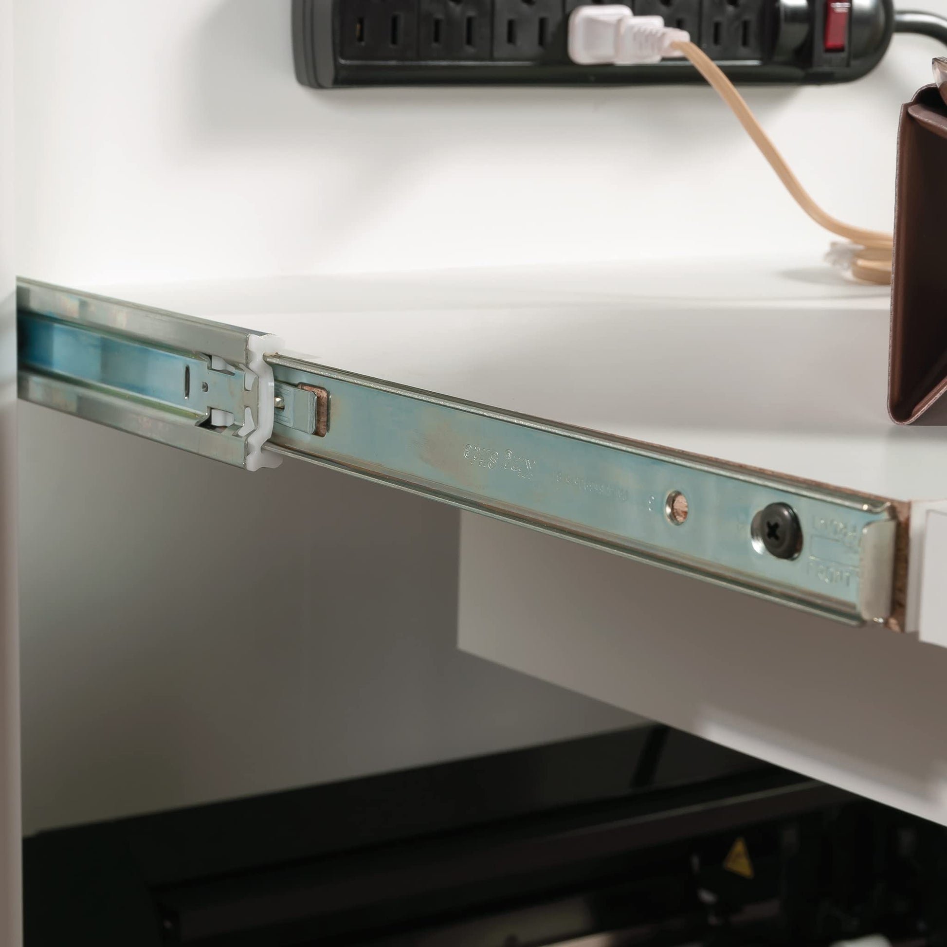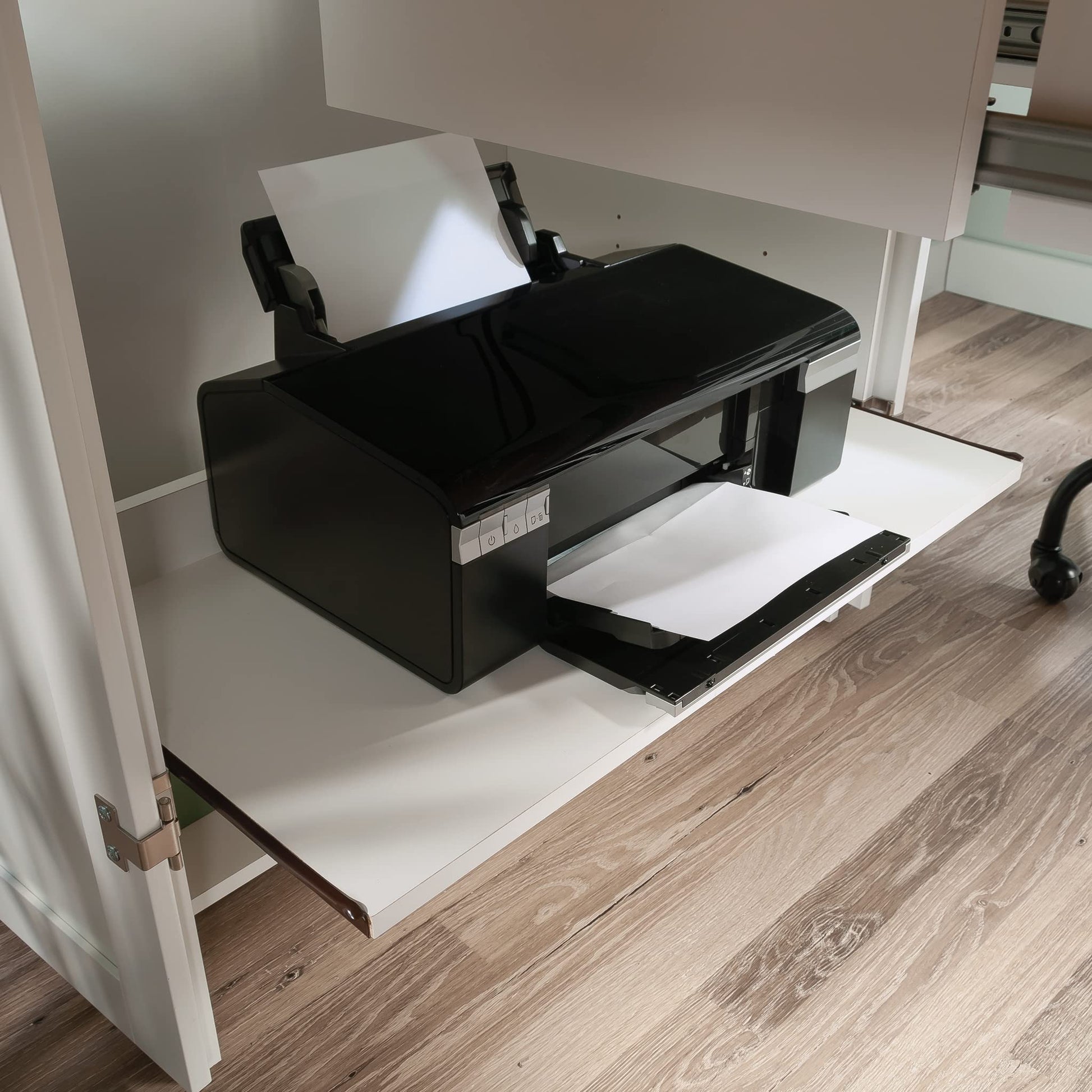- Shelf with full extension slides features drop leaf extension for extra work surface