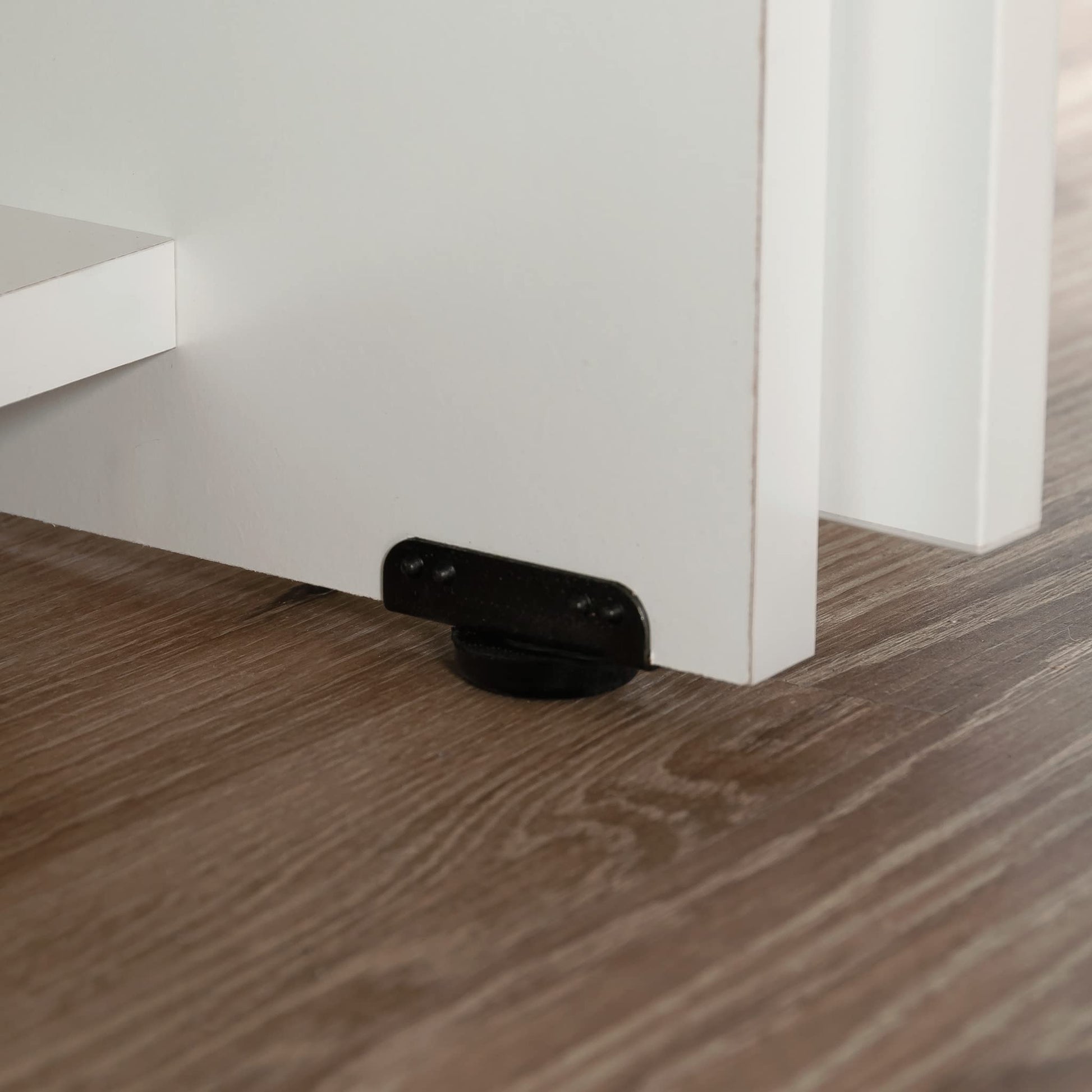 - Center shelf also features power strip with six outlets for convenient electrical access