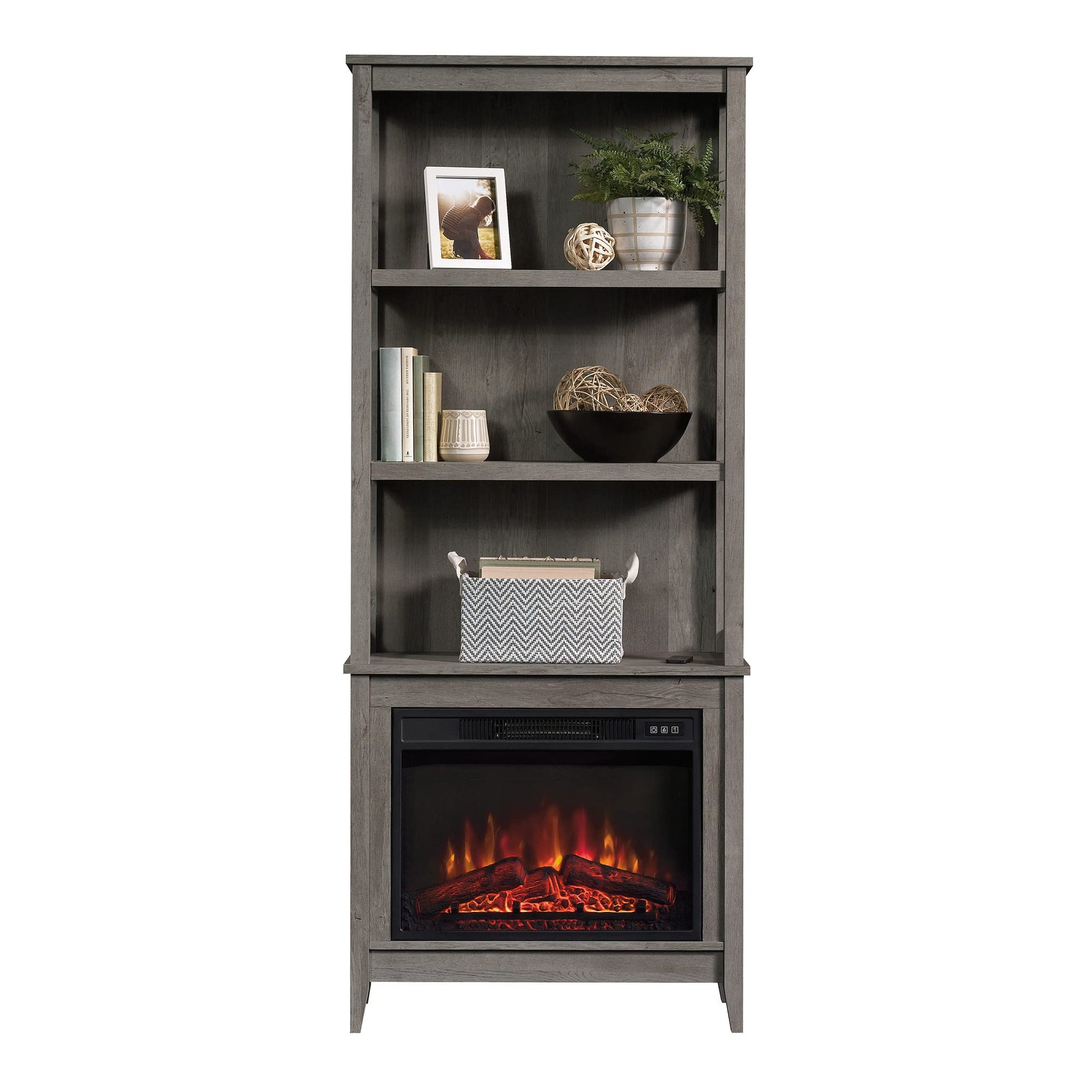 Miscellaneous Storage Library/Book Shelf with Electric Fireplace, Mystic Oak Finish