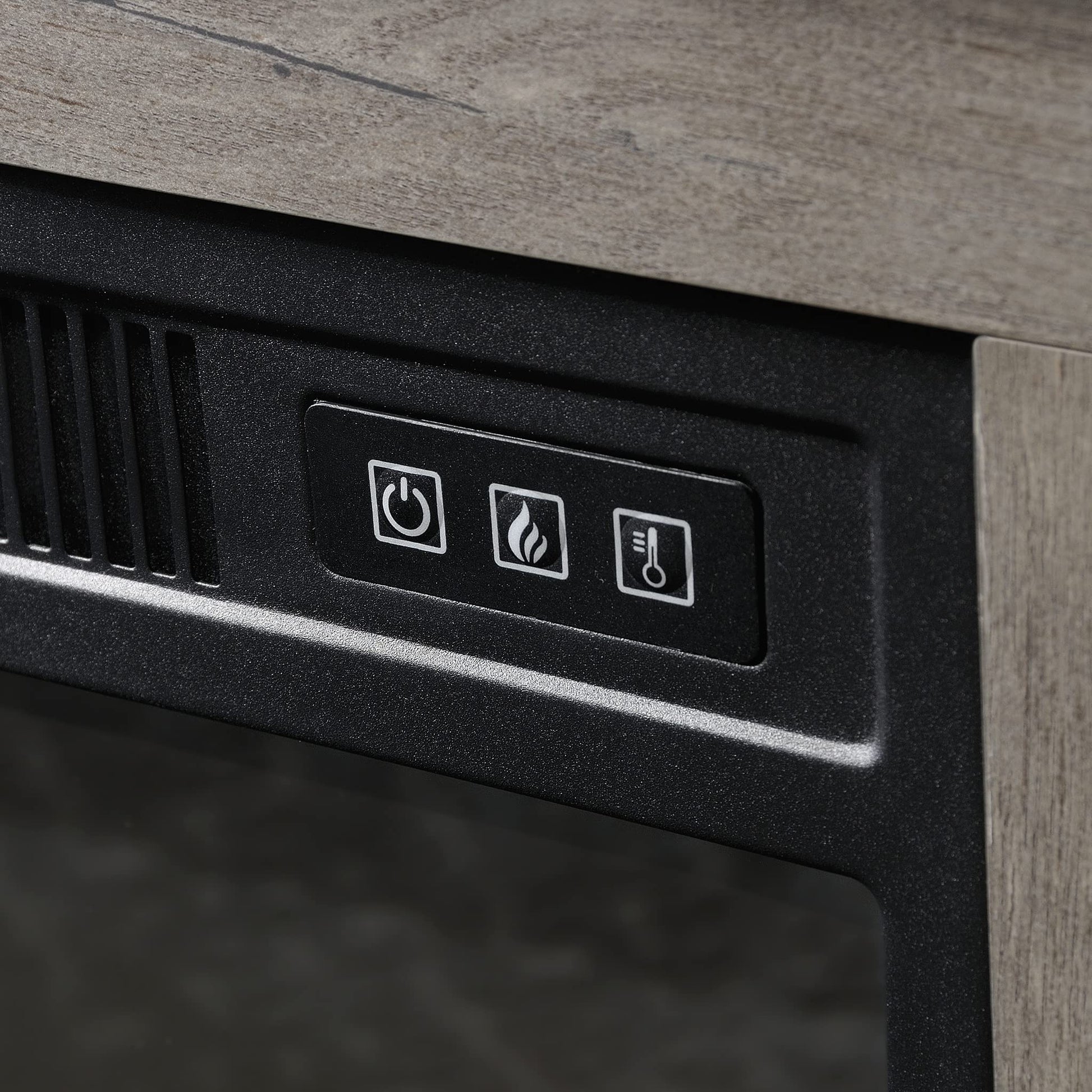 - Electric firebox with remote control and built-in overheat protection heats up to 400 square feet