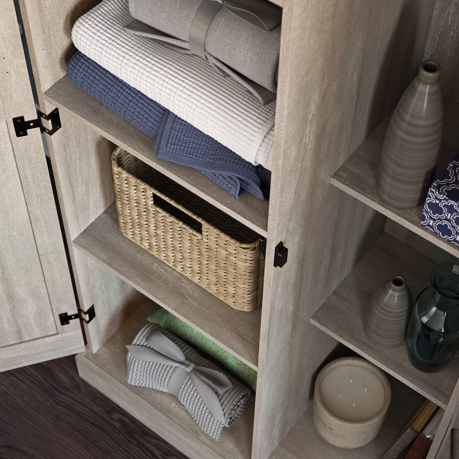 Adjustable & Fixed Shelving: Equipped with two adjustable shelves and one fixed shelf behind each door, offering ample space to store kitchen items, towels, or clothes.