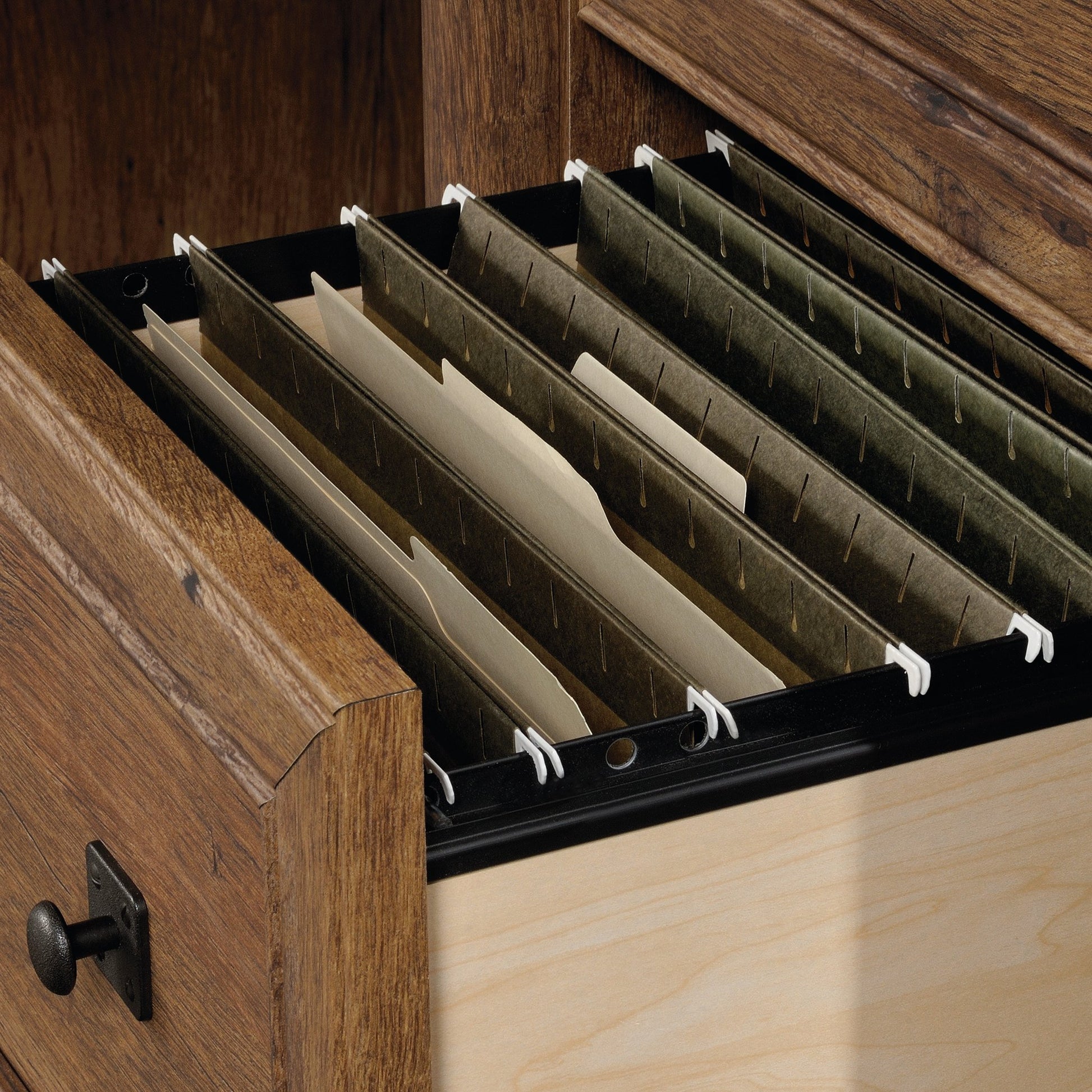 - Quick and easy assembly with patented T-slot drawer system. Engineered wood