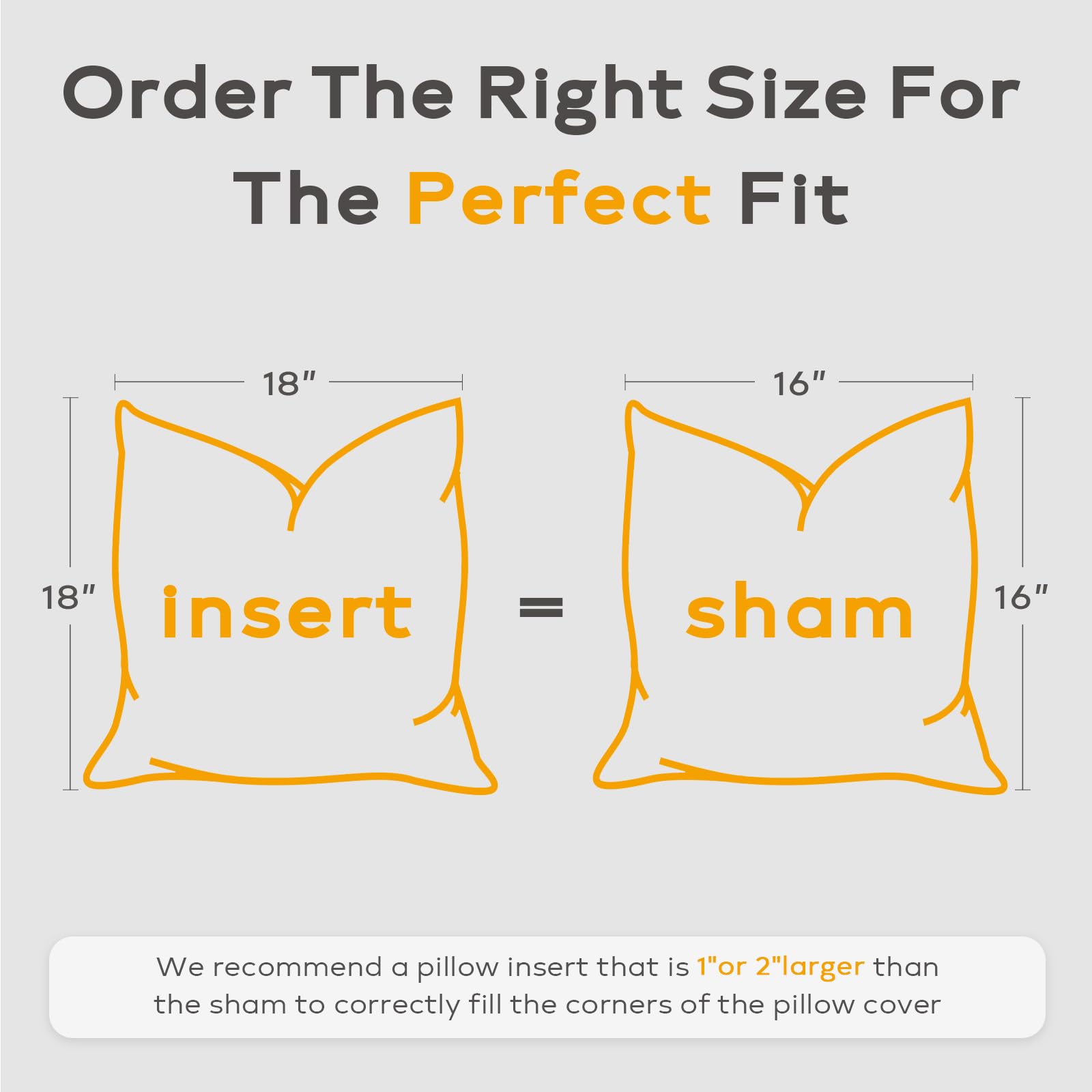 - Each pillow insert is 18x18 inch/45x45 cm. We recommend a pillow insert that is 2" larger than the sham to correctly fill the corners of the pillow cover.
