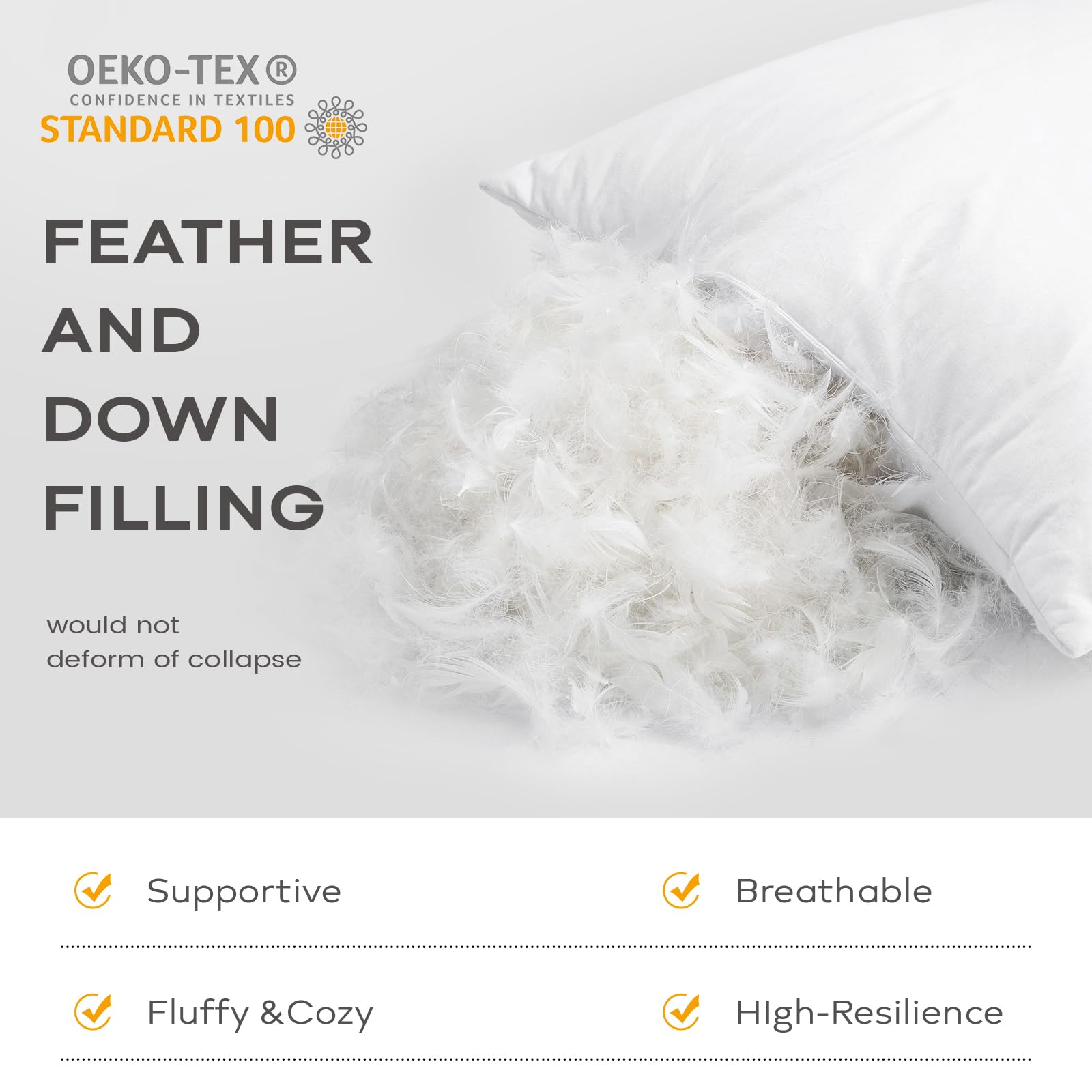 - This pillow insert is filled with white goose down and feather, making it fluffy and cozy, breathable and comfortable, don't make a sound. They provide superior quality compared to common fillers.