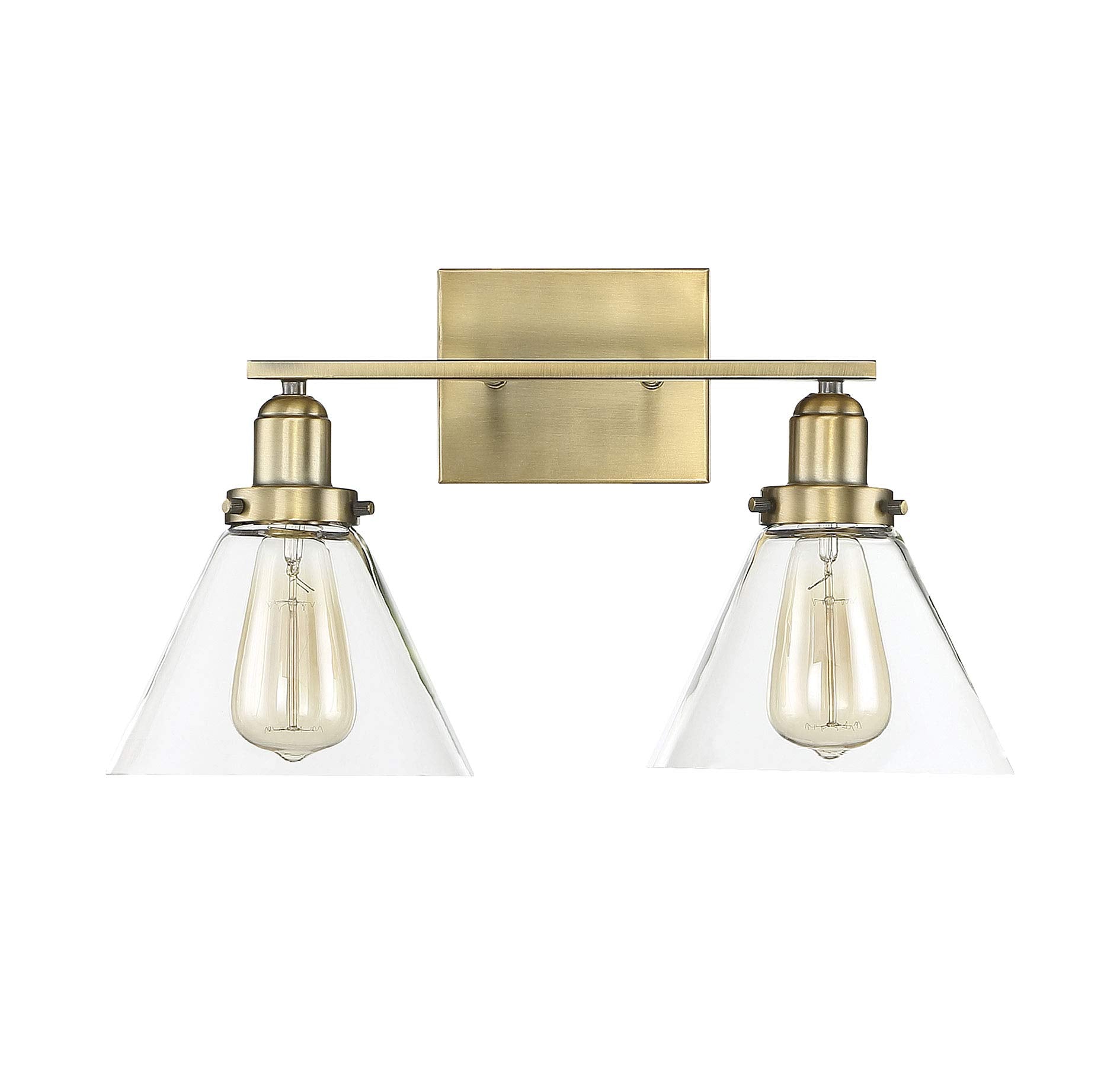 8-9130-2-322 Drake Farmhouse Vintage Industrial Clear Glass Bathroom Vanity Wall Light