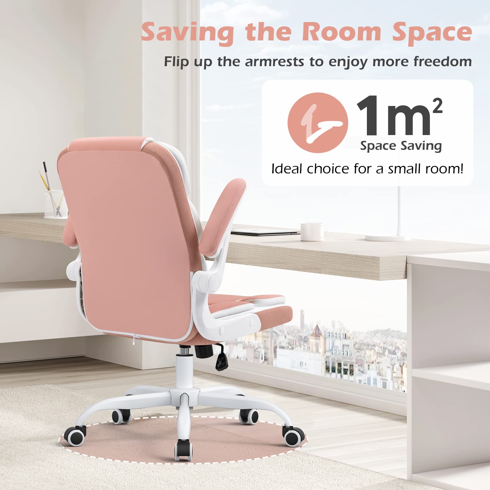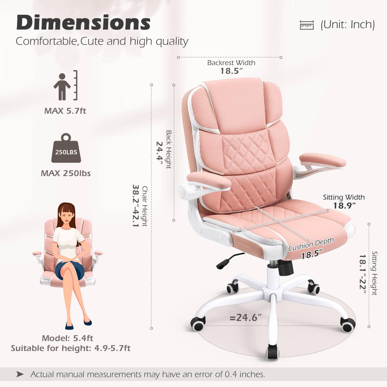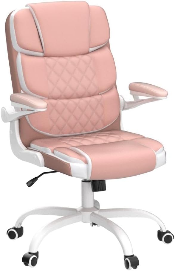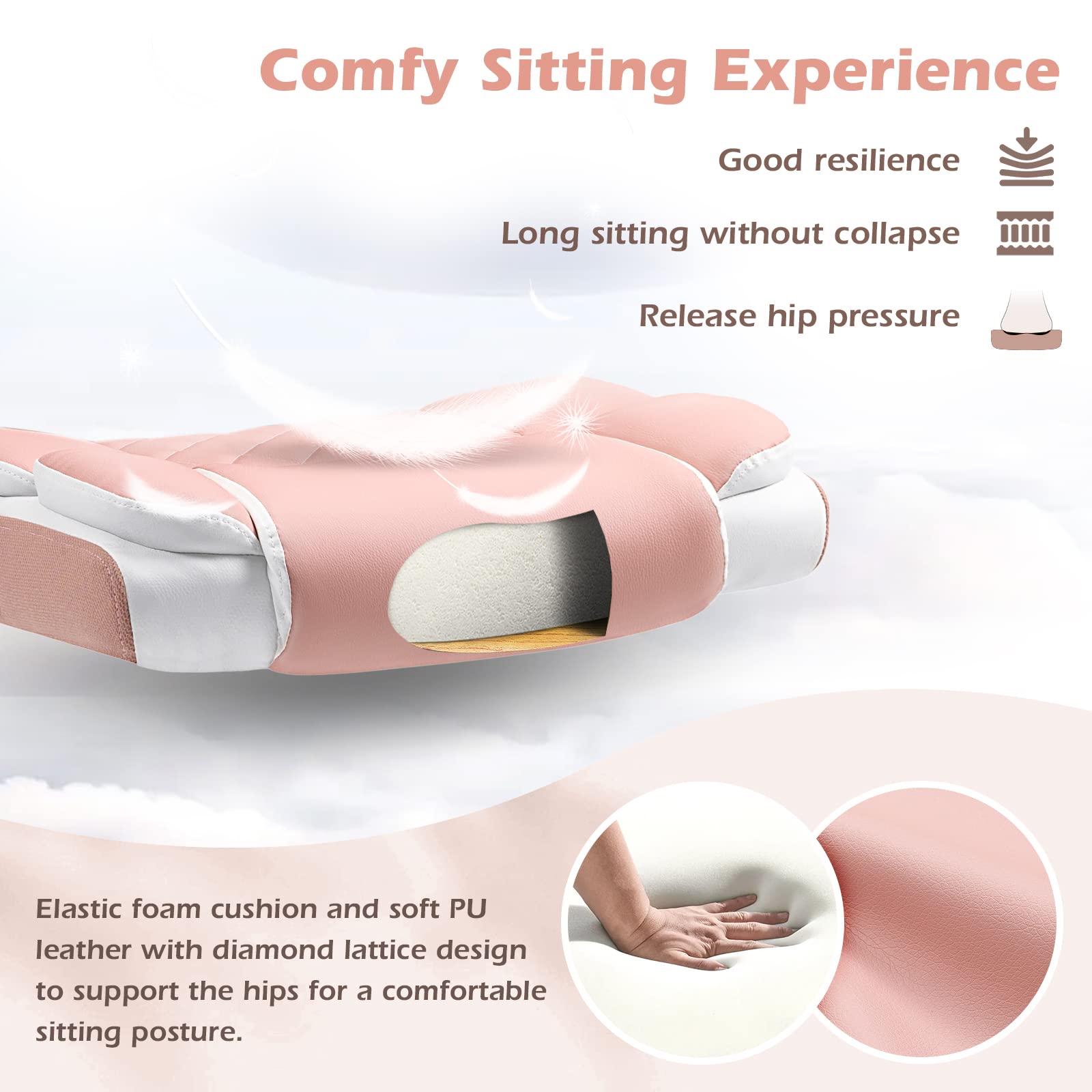 Ergonomic Office Chair Pink PU Leather Desk Chairs Computer Chair with Wheels